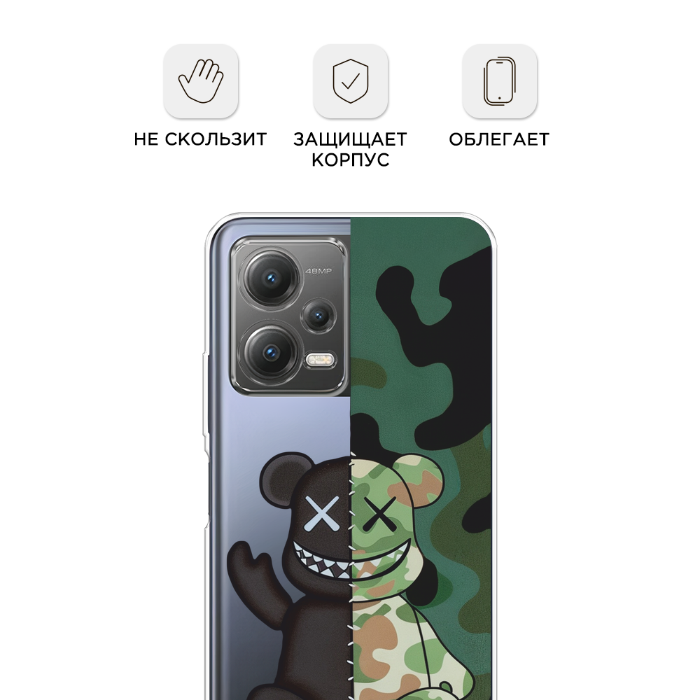 Купить Чехол на Xiaomi Poco X5 5G / Сяоми Поко X5 5G с принтом KAWS 23 февраля 2, прозрачный