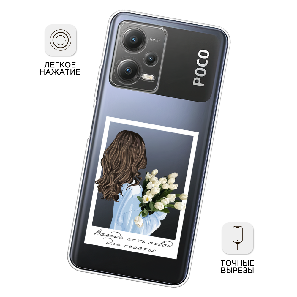 Купить Чехол на Xiaomi Poco X5 5G / Сяоми Поко X5 5G с принтом Повод для счастья, прозрачный