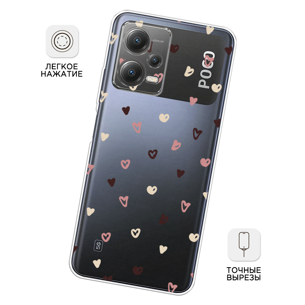 Купить Чехол на Xiaomi Poco X5 5G / Сяоми Поко X5 5G с принтом Сердечки паттерн рисунок, прозрачный