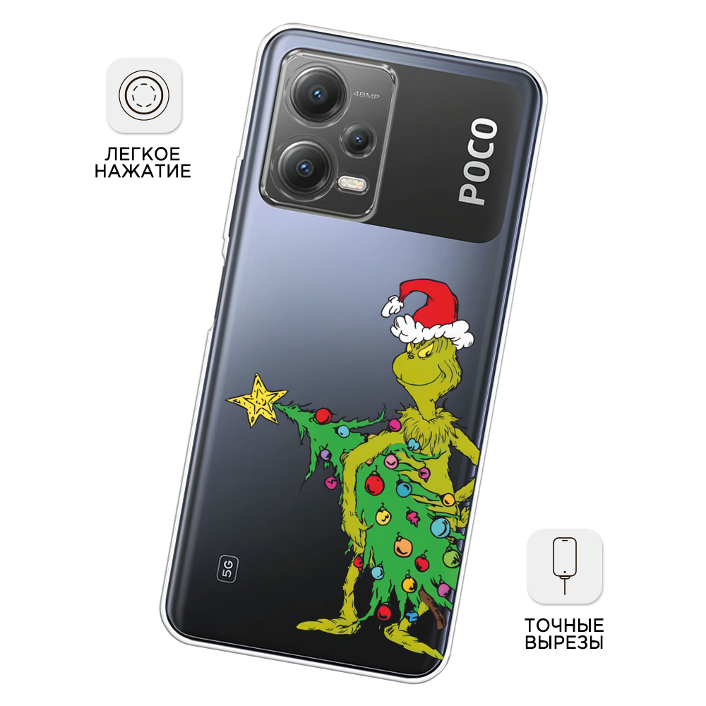 СохранитьЧехол на Xiaomi Poco X5 5G / Сяоми Поко X5 5G с принтом Гринч с ёлкой 2, прозрачный интересное: