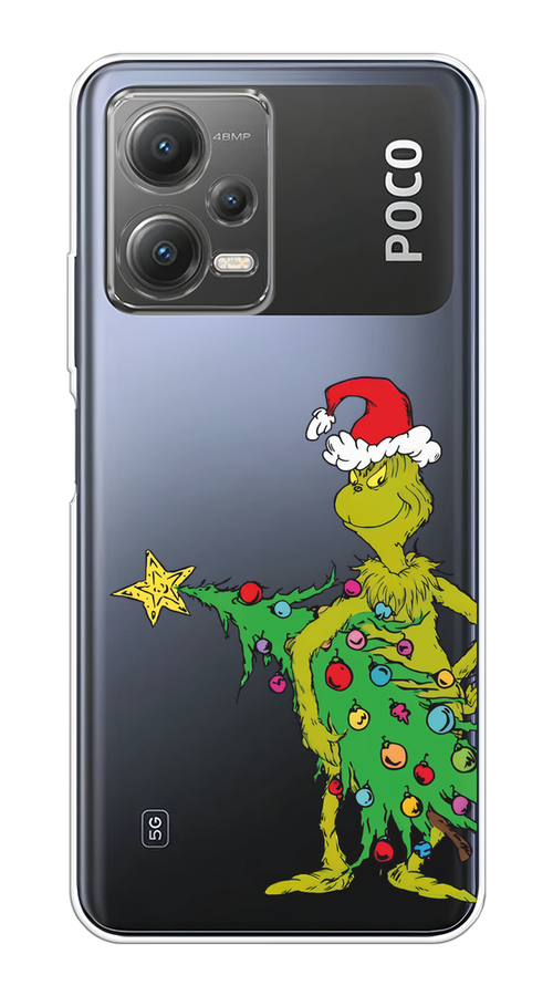 Чехол на Xiaomi Poco X5 5G / Сяоми Поко X5 5G с принтом Гринч с ёлкой 1