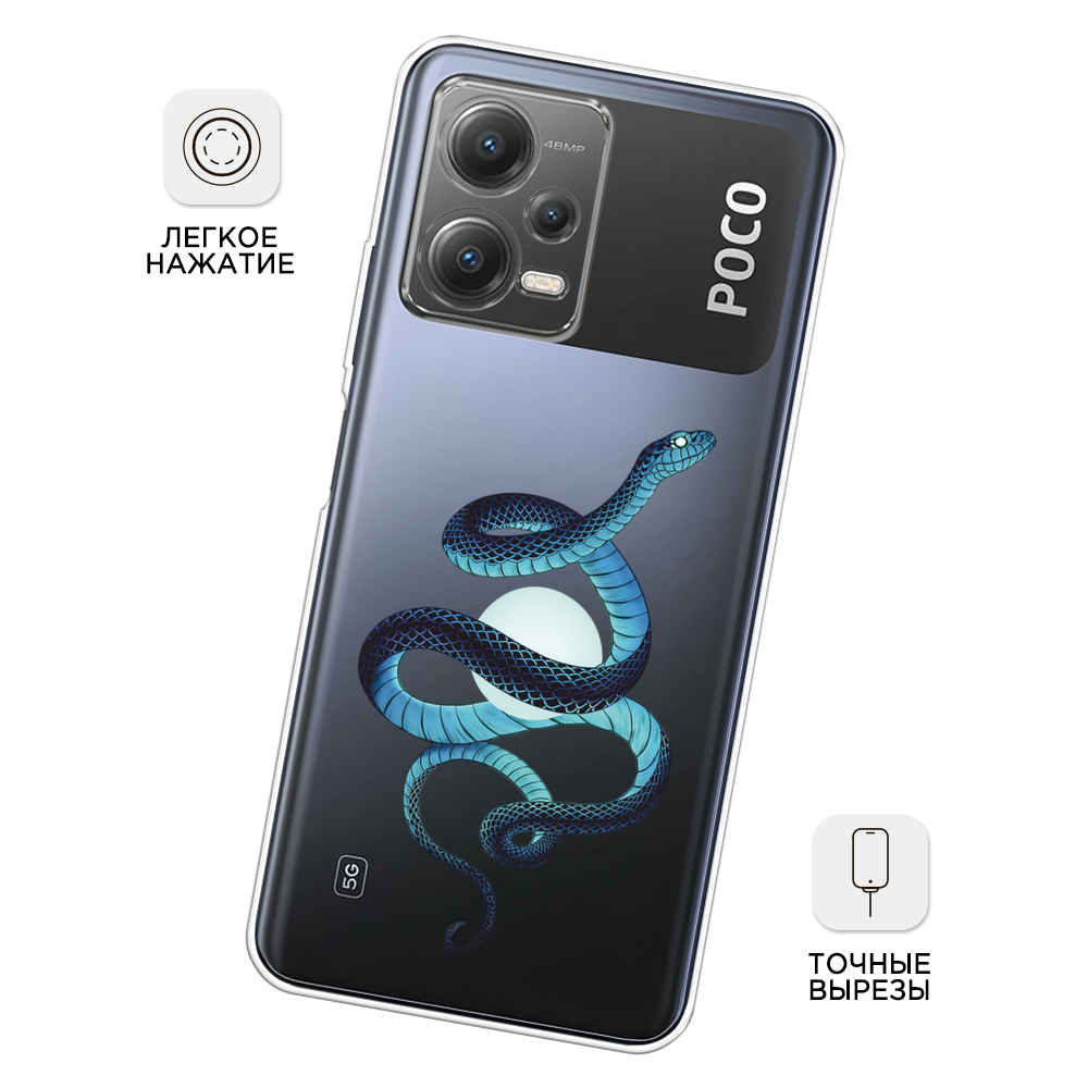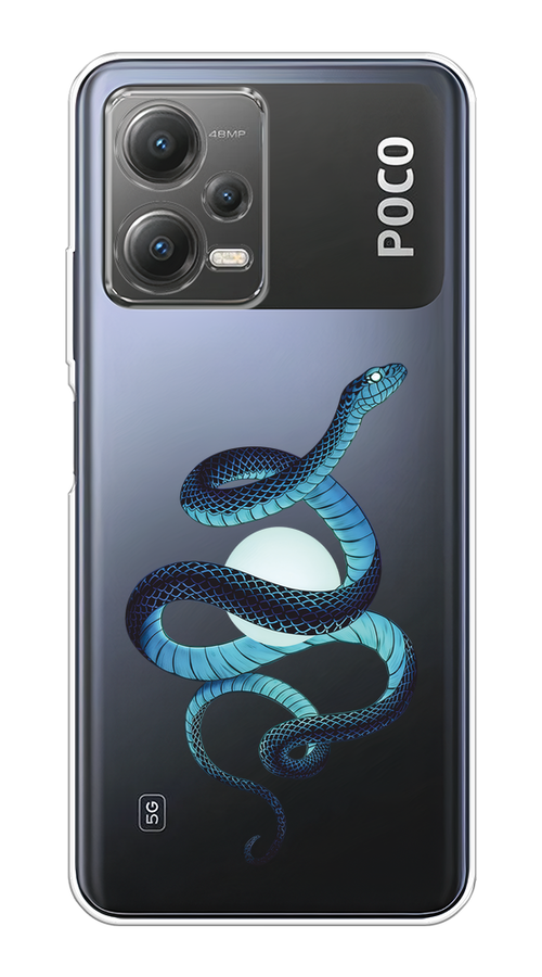 Чехол на Xiaomi Poco X5 5G / Сяоми Поко X5 5G с принтом Змея и полумесяц 3, прозрачный