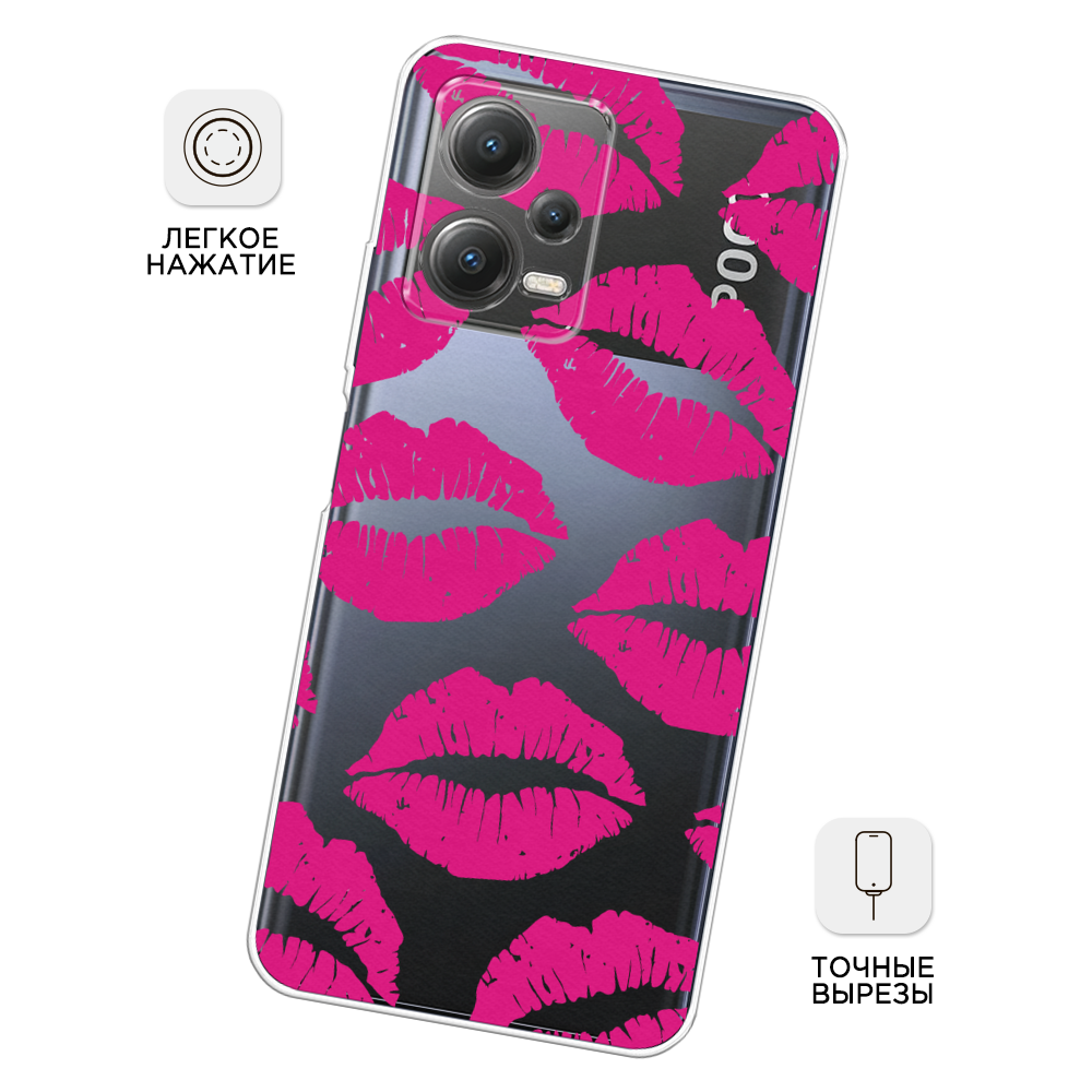 Купить Чехол на Xiaomi Poco X5 5G / Сяоми Поко X5 5G с принтом Ярко-розовая помада паттерн, прозрачный