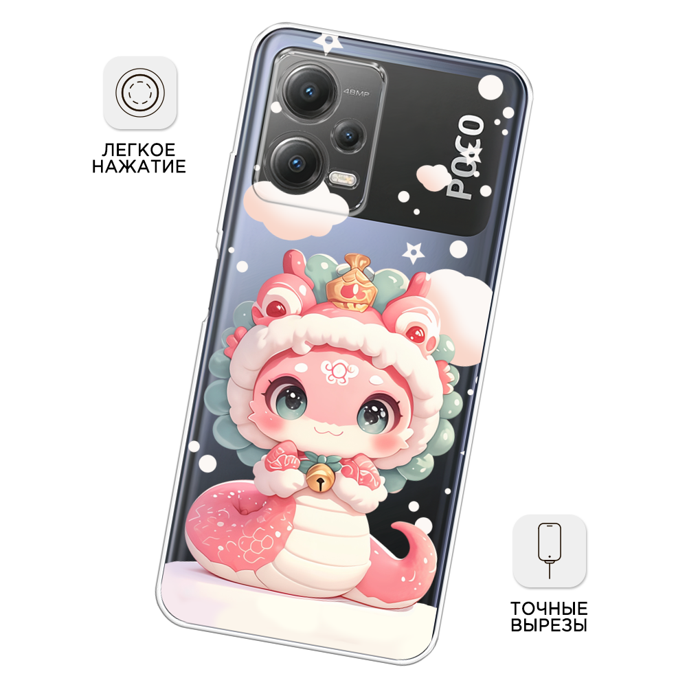 СохранитьЧехол на Xiaomi Poco X5 5G / Сяоми Поко X5 5G с принтом Розовая праздничная змейка 2, прозрачный интересное: