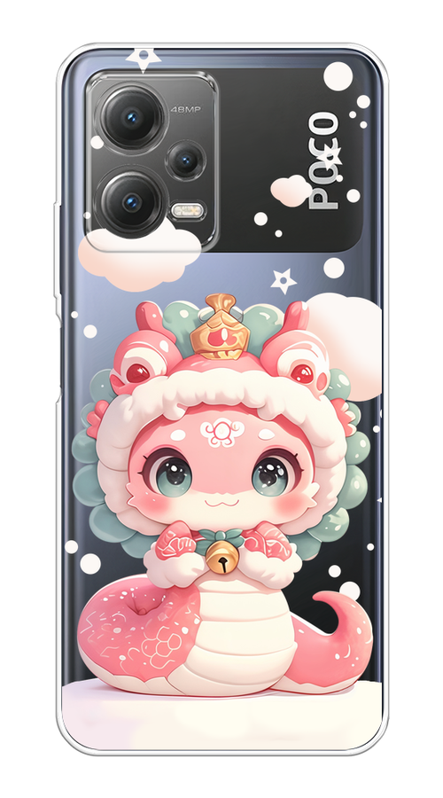 Купить Чехол на Xiaomi Poco X5 5G / Сяоми Поко X5 5G с принтом Розовая праздничная змейка 2, прозрачный