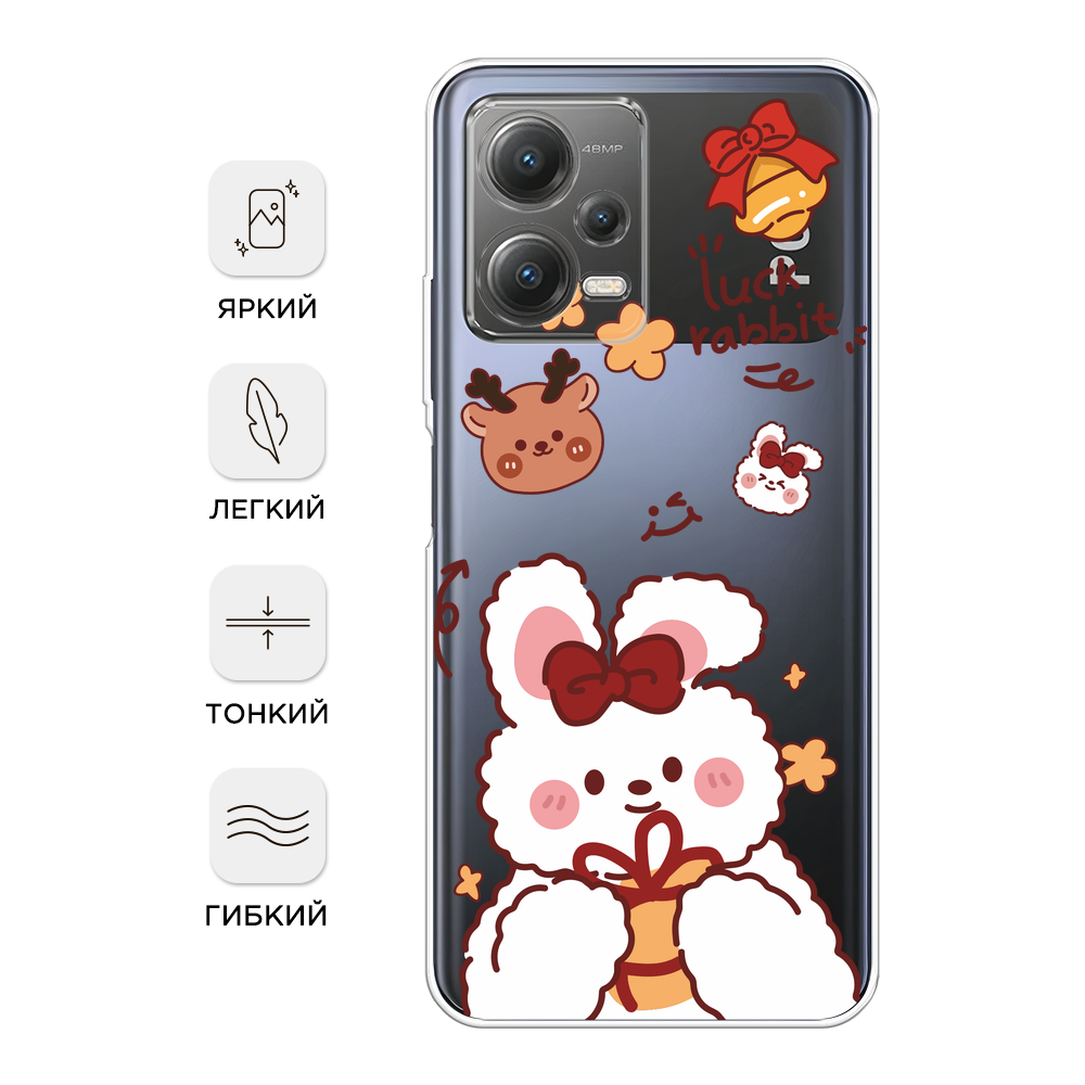СохранитьЧехол на Xiaomi Poco X5 5G / Сяоми Поко X5 5G с принтом Праздничный кролик рисунок 3, прозрачный интересное: