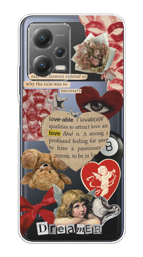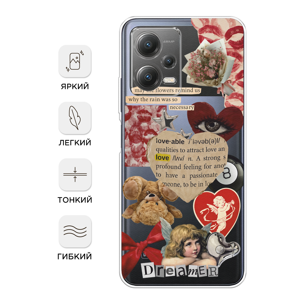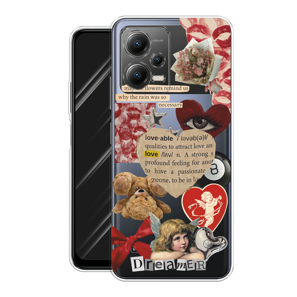 Купить Чехол на Xiaomi Poco X5 5G / Сяоми Поко X5 5G с принтом Поцелуи и сердца, прозрачный