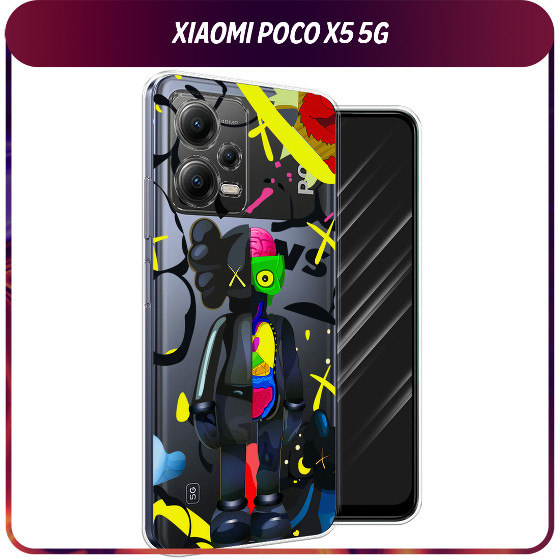 Чехол на Xiaomi Poco X5 5G / Сяоми Поко X5 5G с принтом KAWS 23 февраля 2, прозрачный