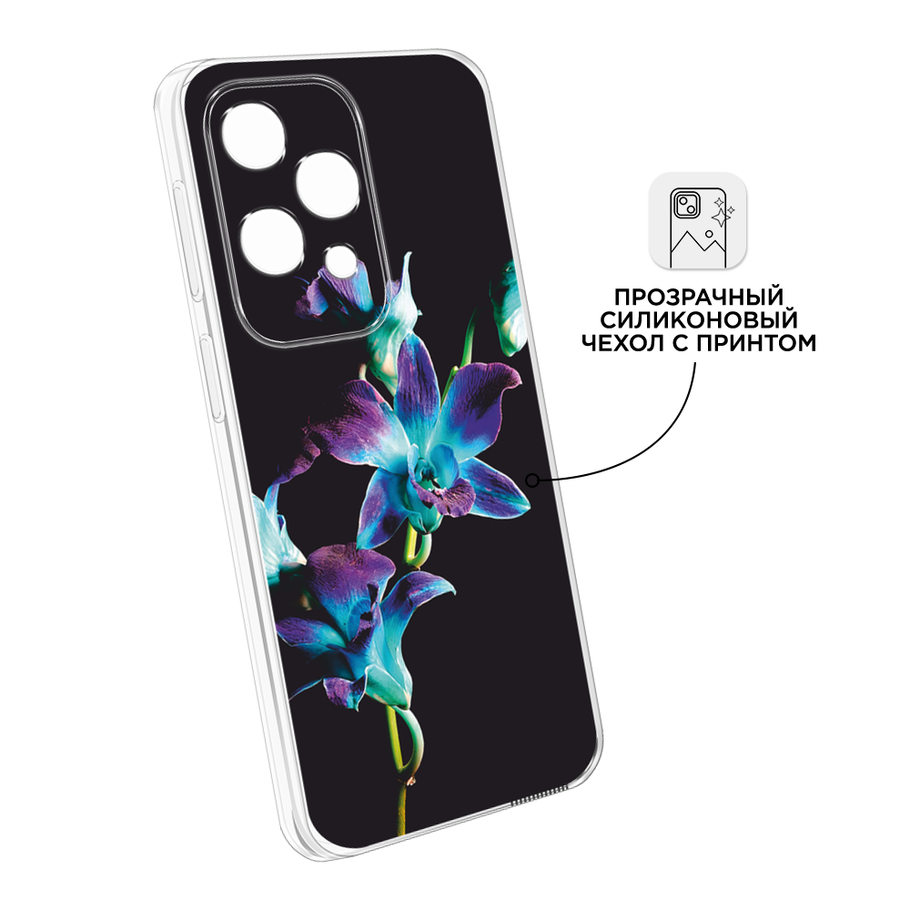 СохранитьЧехол на Xiaomi Poco X5 5G / Сяоми Поко X5 5G с принтом Синий цветок на черном интересное: