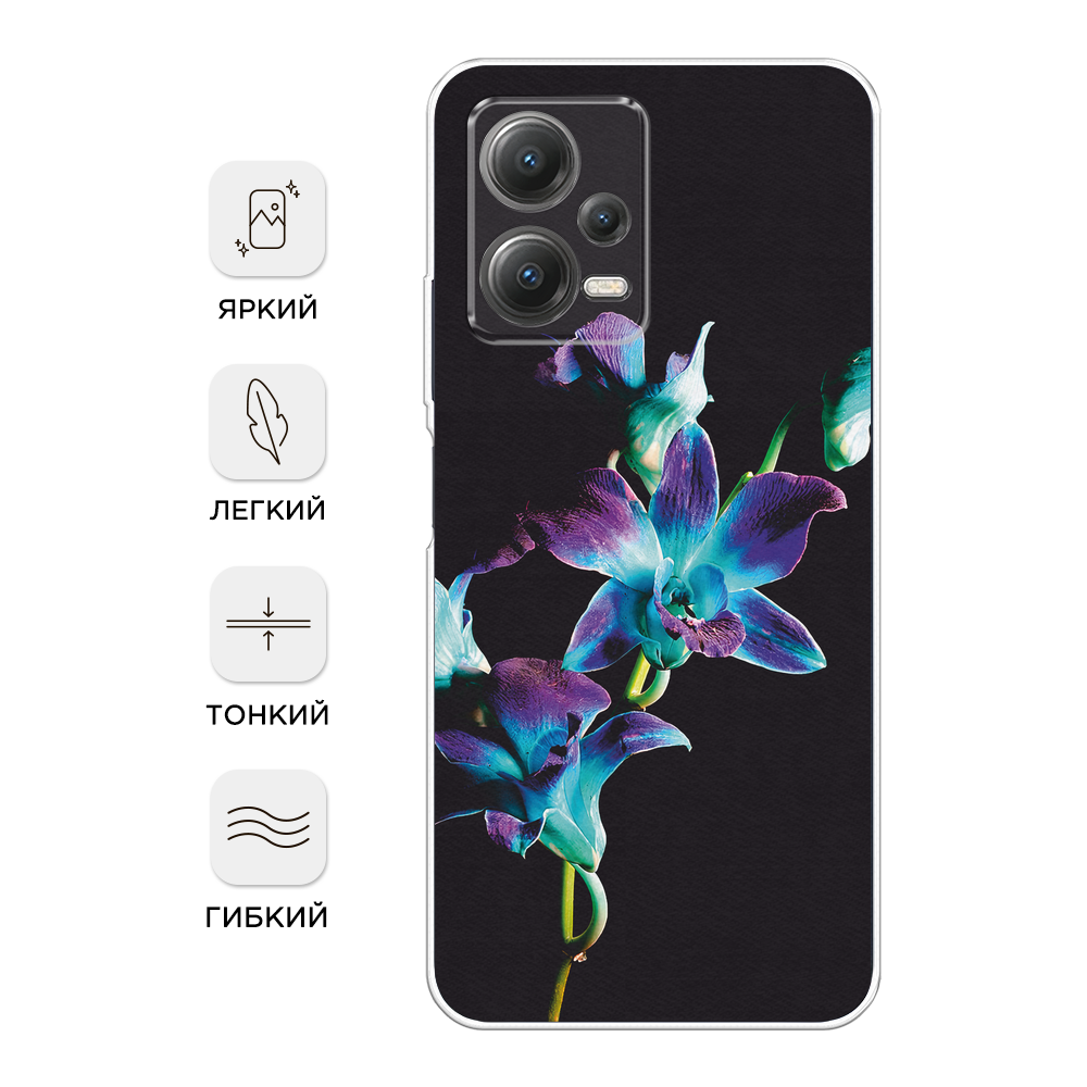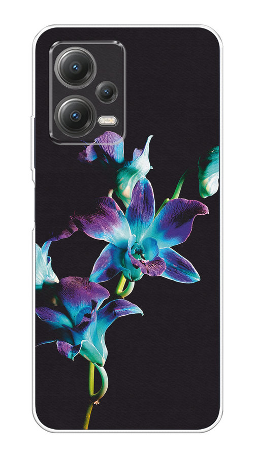 Купить Чехол на Xiaomi Poco X5 5G / Сяоми Поко X5 5G с принтом Синий цветок на черном