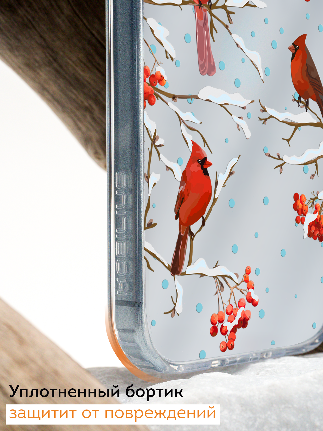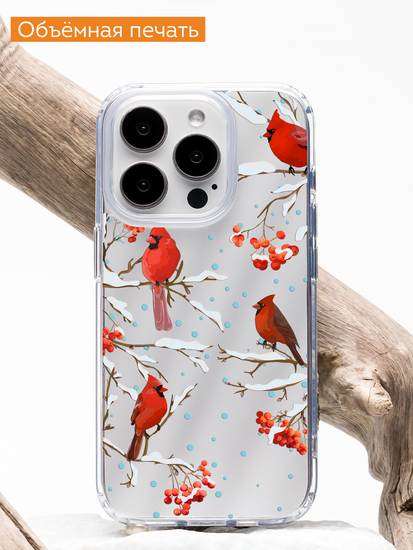 Купить Чехол Mcover "Рябина, снегири, зима", для iPhone 15 Pro Max, силиконовый, ударопрочный, с рисунком