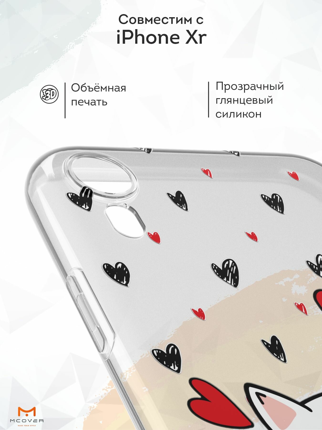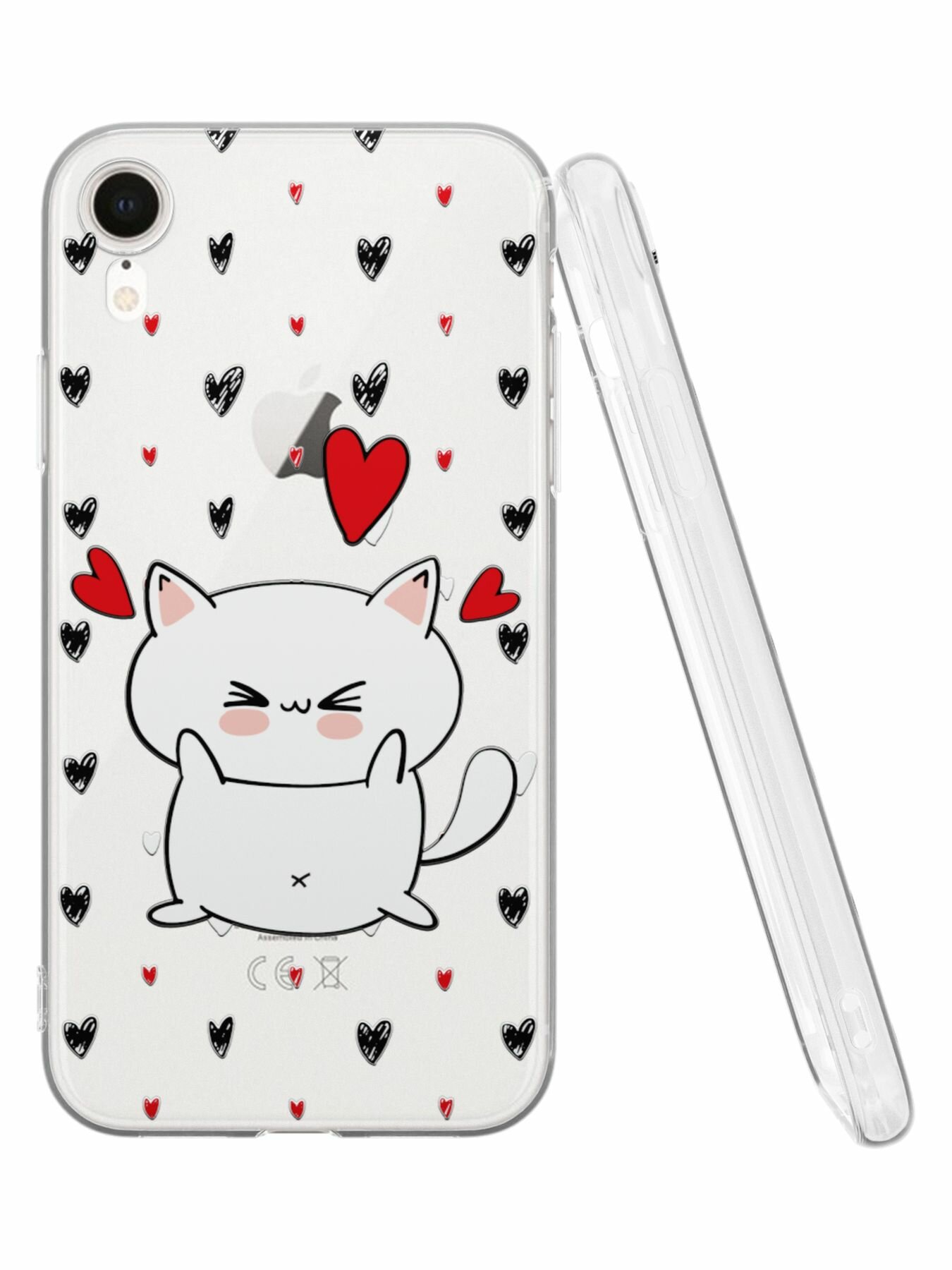 Купить Чехол Mcover с рисунком Котик в сердцах на iPhone Xr, силикон, прозрачный, защита камеры
