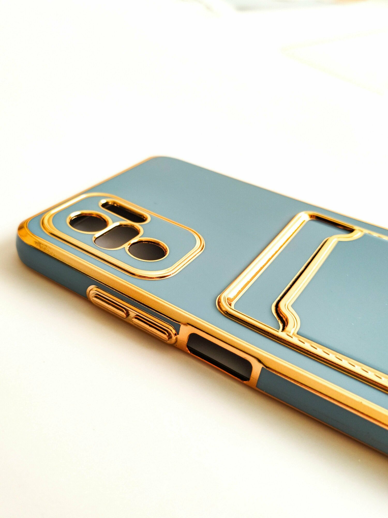 СохранитьЧехол на Xiaomi Redmi Note 10 / 10S / POCO M5s с золотой рамкой противоударный бампер с карманом для карт на Редми Нот 10 / 10с / Поко М5с Голубой интересное: