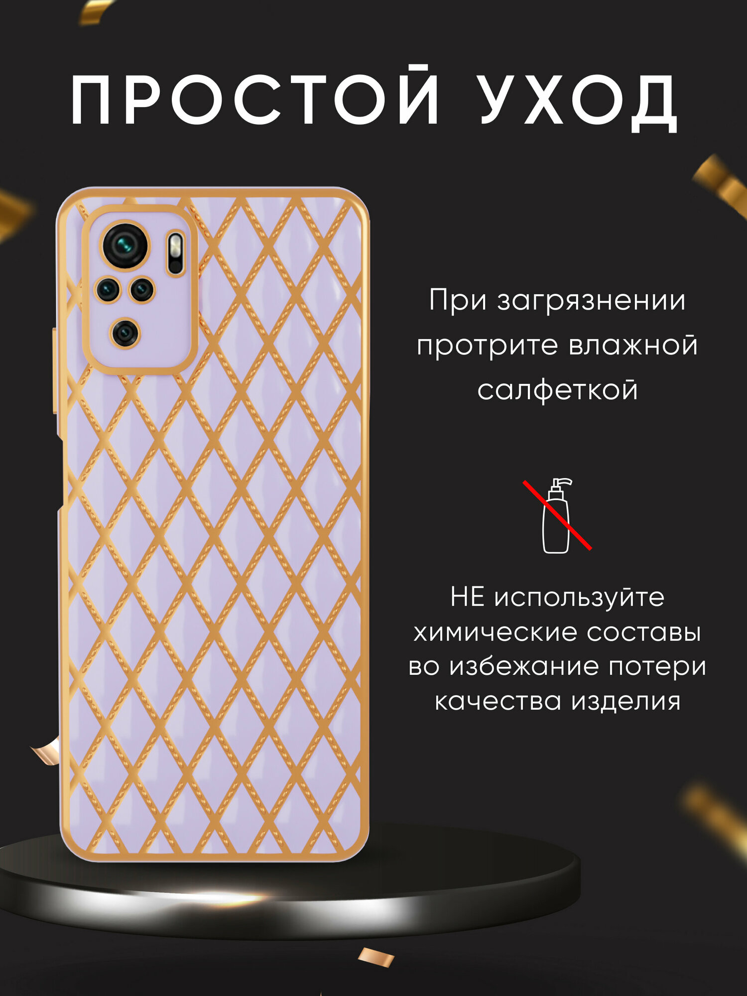 Купить Чехол на Xiaomi Redmi Note 10 / 10S / POCO M5s силиконовый защитный бампер на Редми Нот 10 / 10с / Поко М5с с золотой рамкой Сиреневый