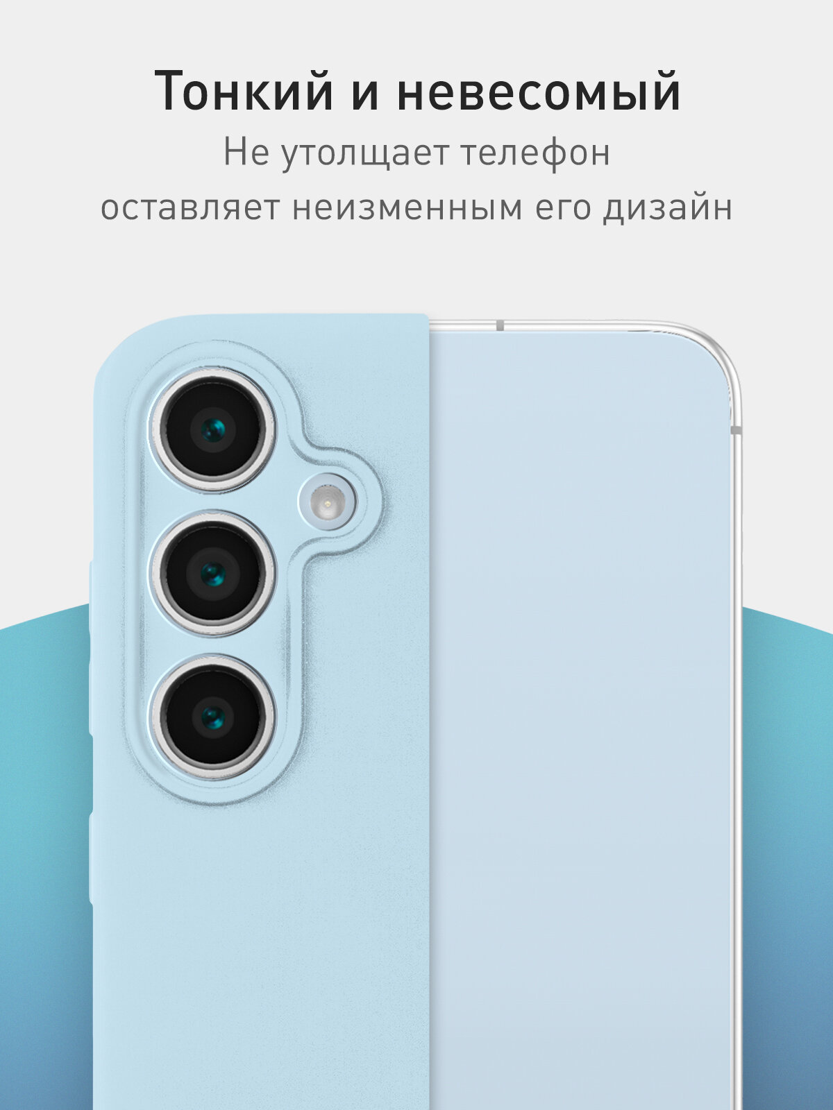 СохранитьМатовый силиконовый чехол Rosco на Samsung Galaxy S24 FE (Самсунг Галакси С24 ФЕ), тонкий, голубой под цвет телефона интересное: