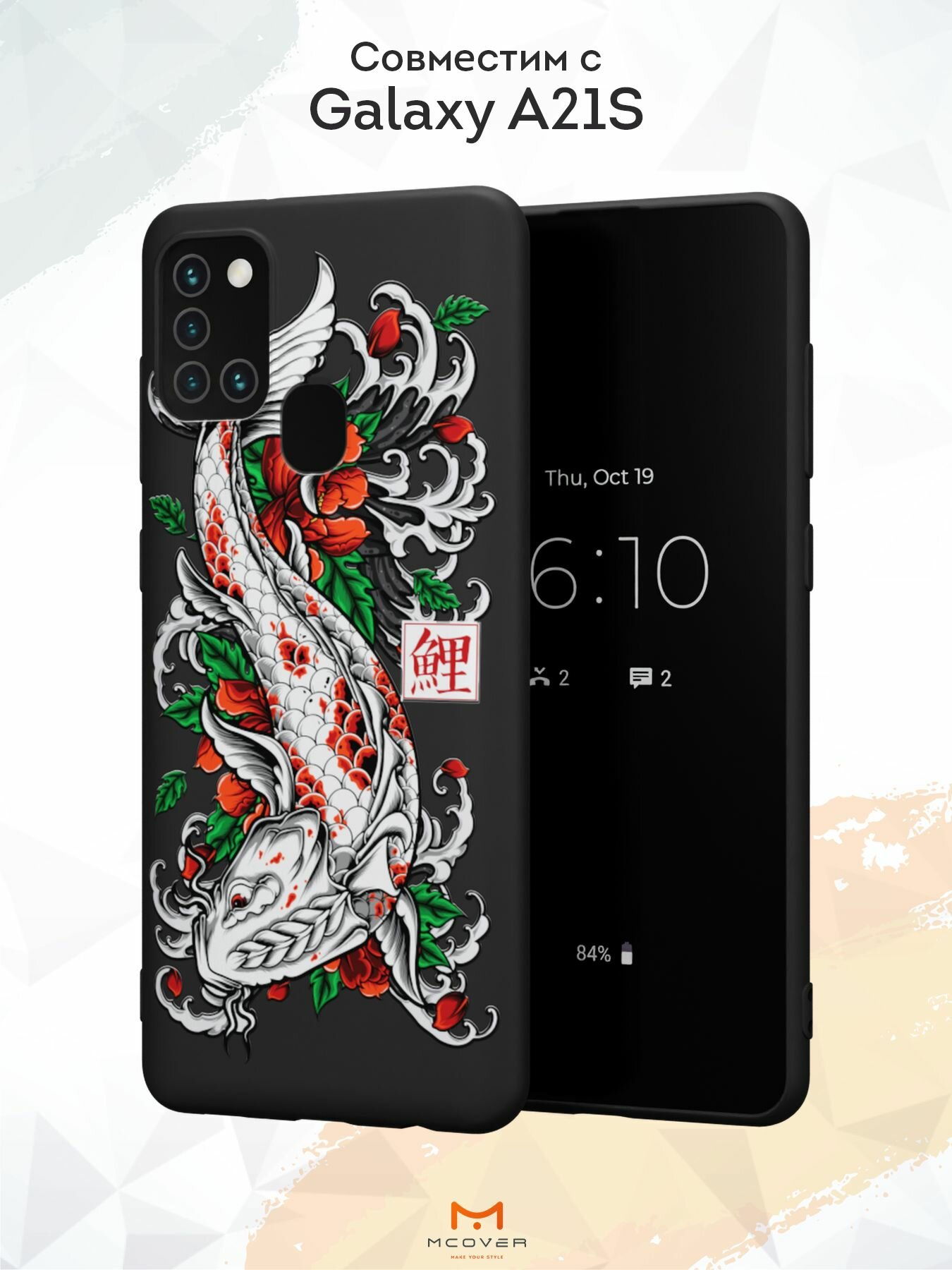 СохранитьСиликоновый чехол Mcover для Galaxy A21s (Галакси А21с), Карп Кои интересное:
