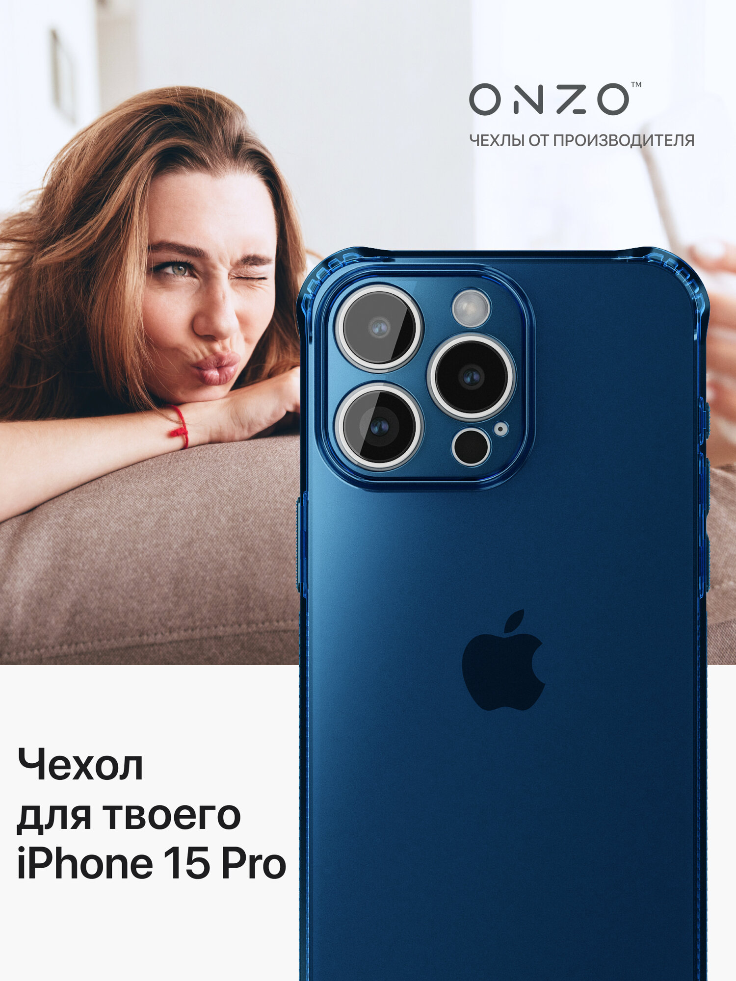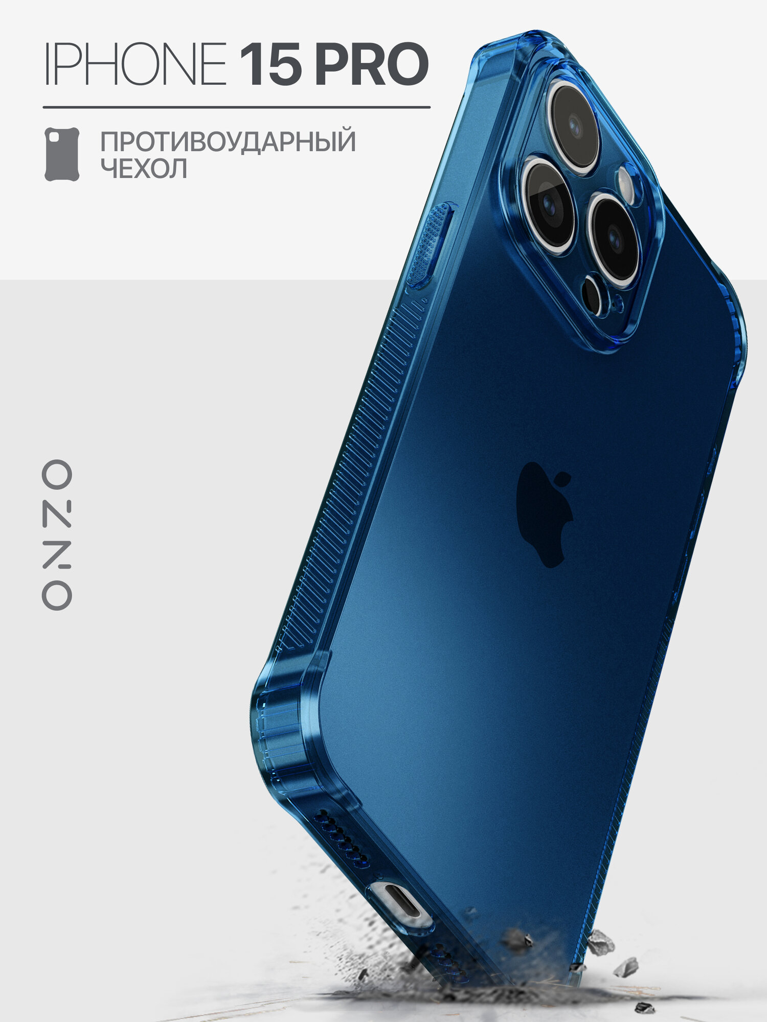 СохранитьПротивоударный бампер для iPhone 15 Pro / Чехол на Айфон 15 Про с рельефными гранями, синий прозрачный интересное: