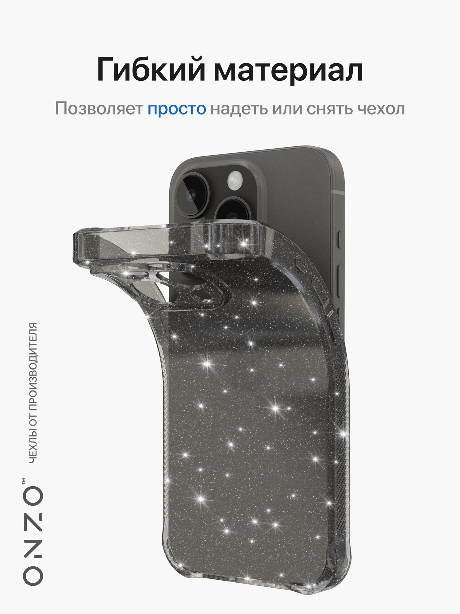СохранитьПротивоударный чехол на iPhone 15 Pro / Айфон 15 Про бампер черный прозрачный с блестками интересное: