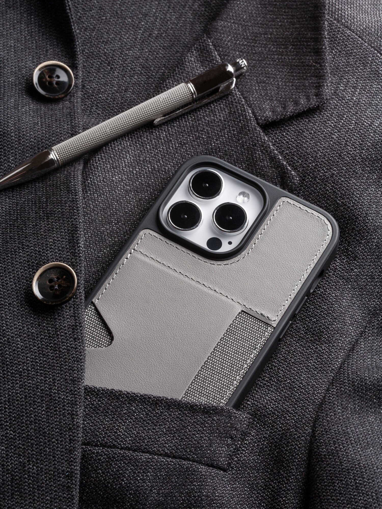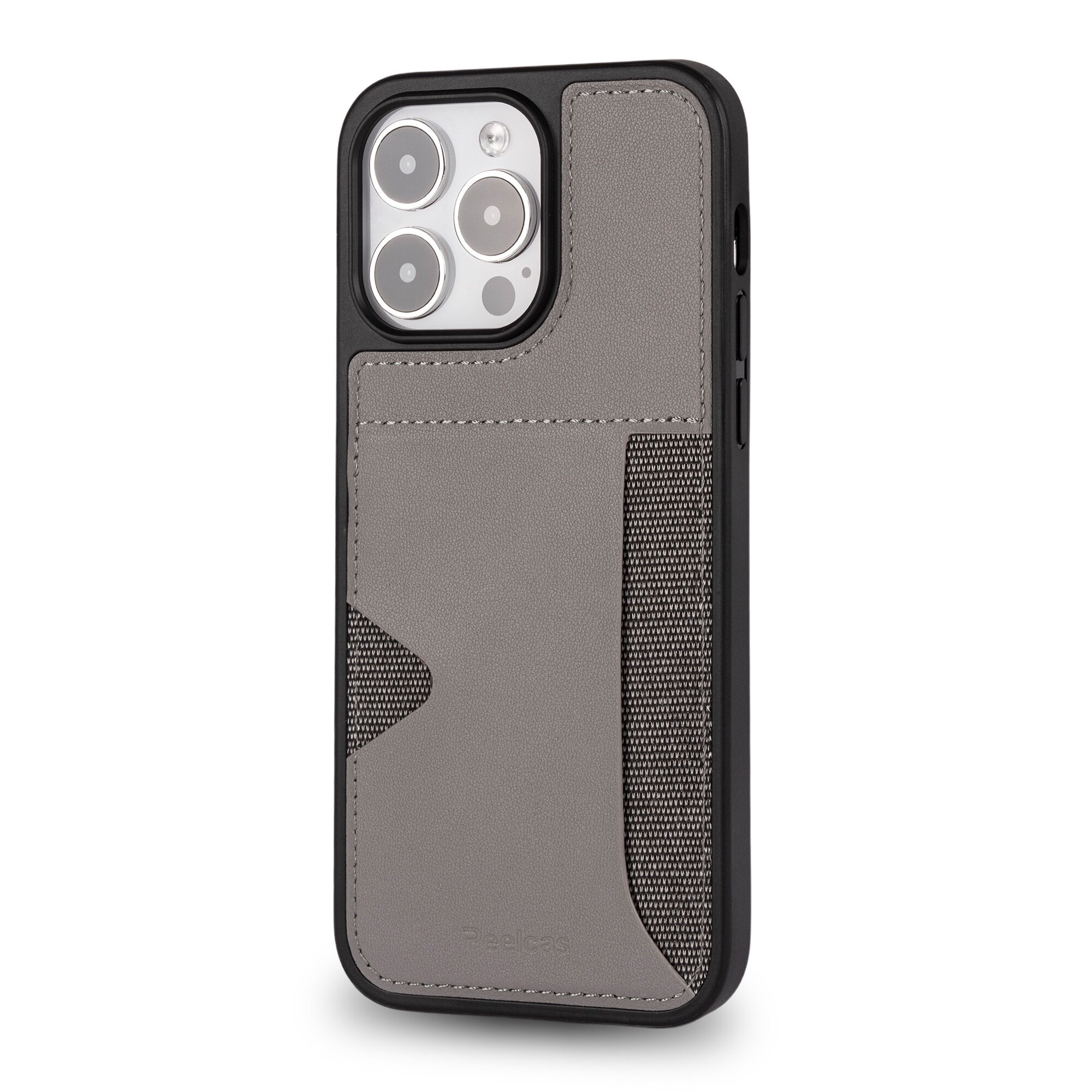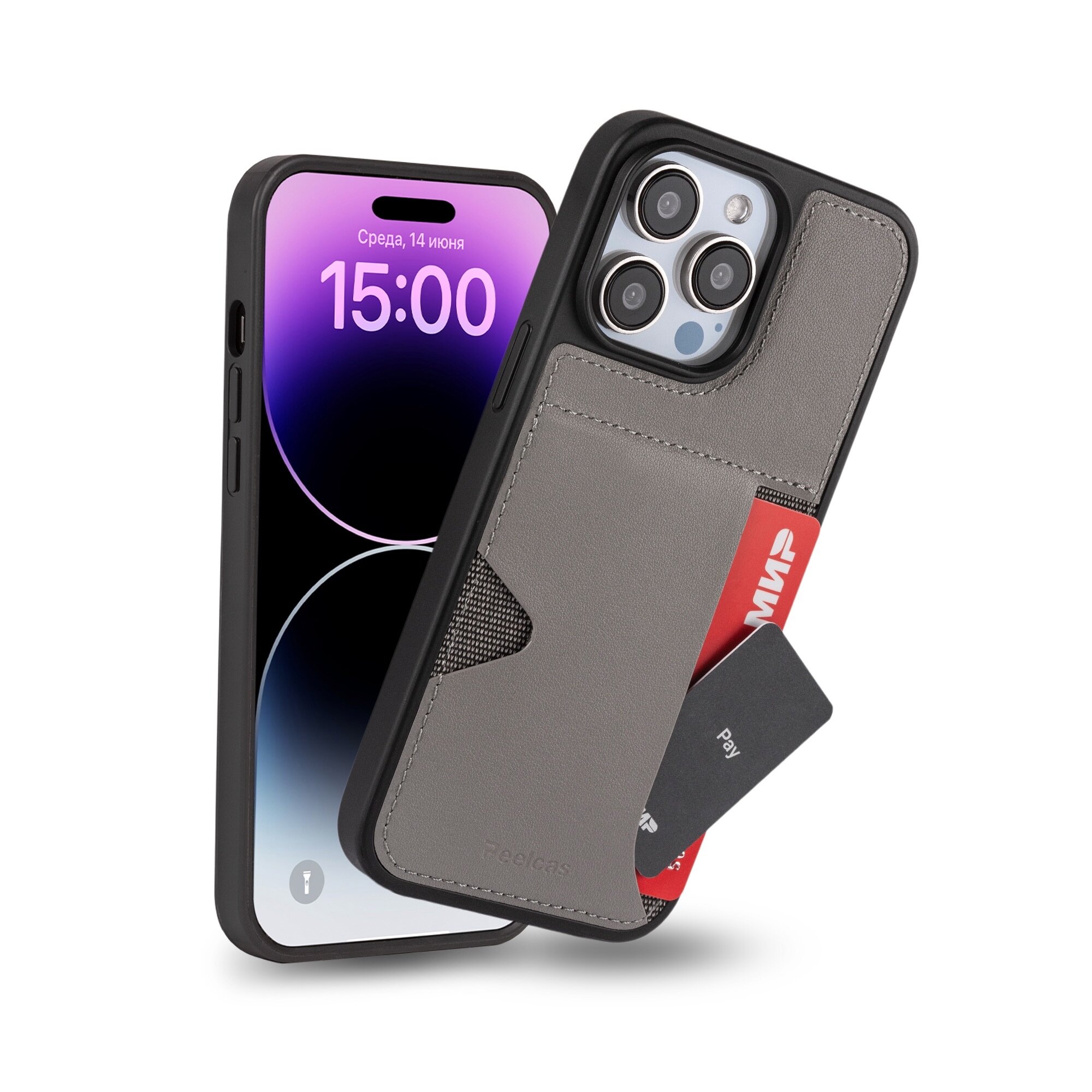 Купить Чехол кожаный для iphone 14 pro max 6,7 для карт серого цвета