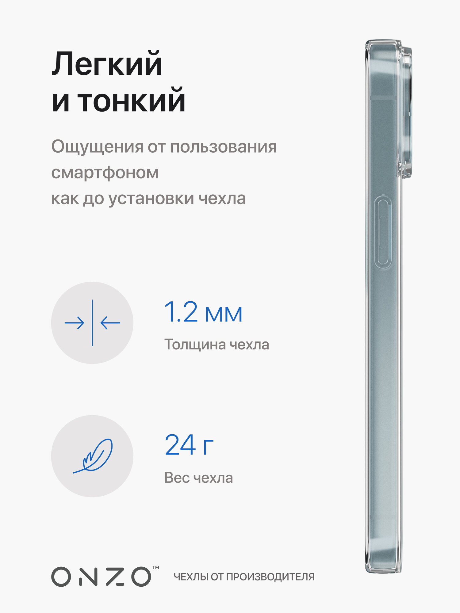Чехол для iPhone 15 / Айфон 15 защитный бампер тонкий, голубой прозрачный