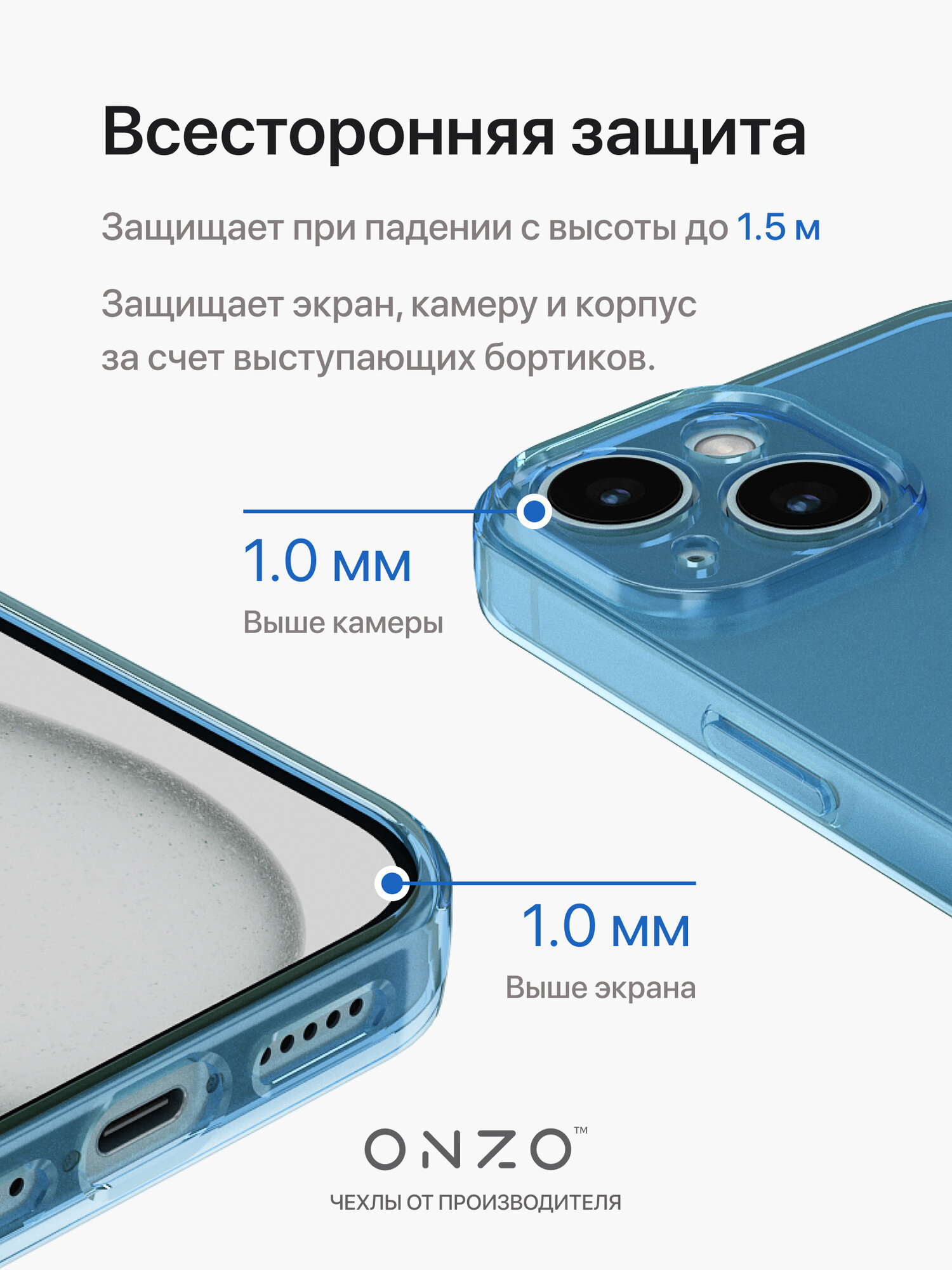 СохранитьЧехол для iPhone 15 / Айфон 15 защитный бампер тонкий, голубой прозрачный интересное: