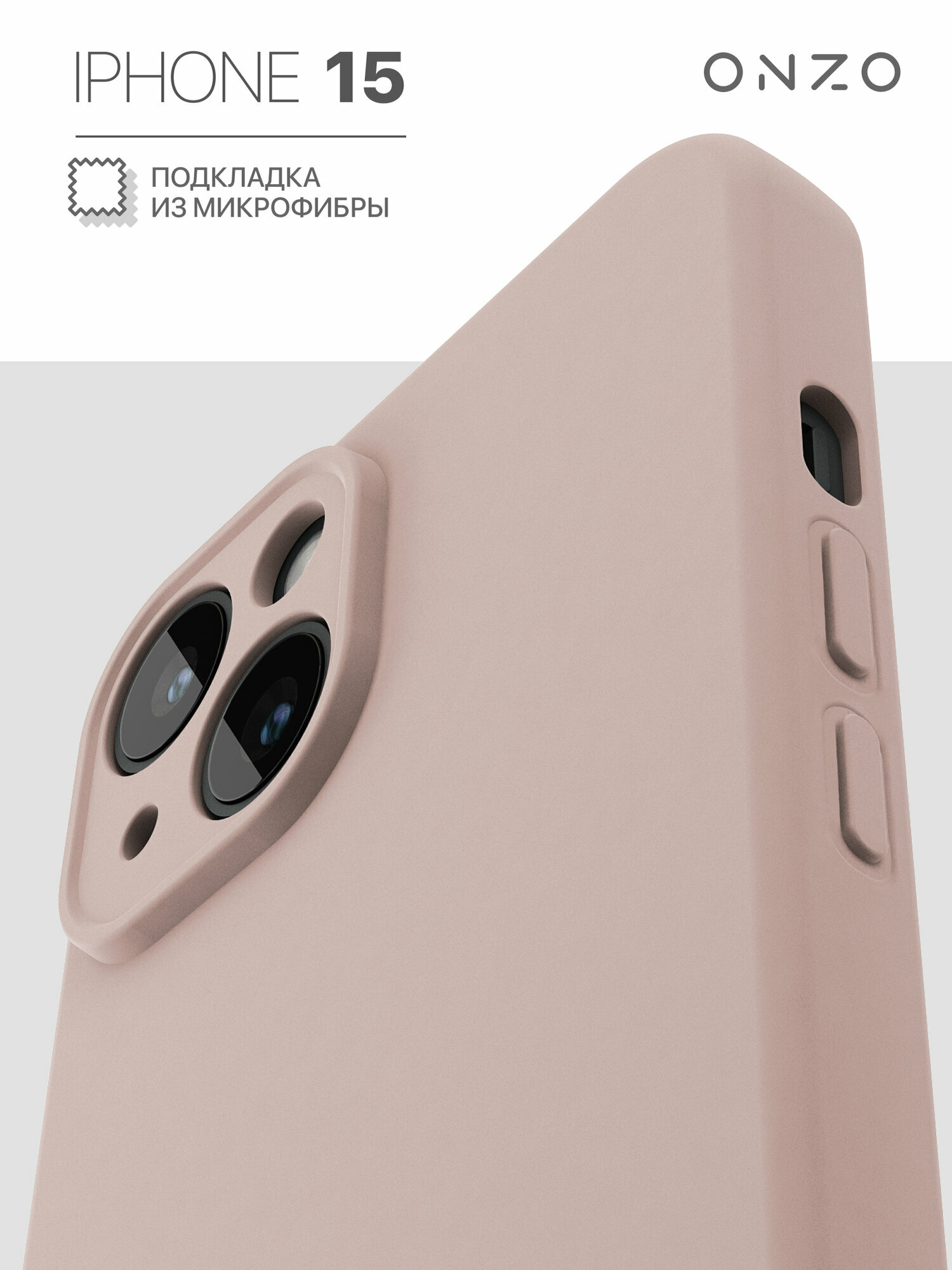 Чехол для iPhone 15 / Айфон 15 накладка с защитной покладкой из микрофибры, бежевый матовый