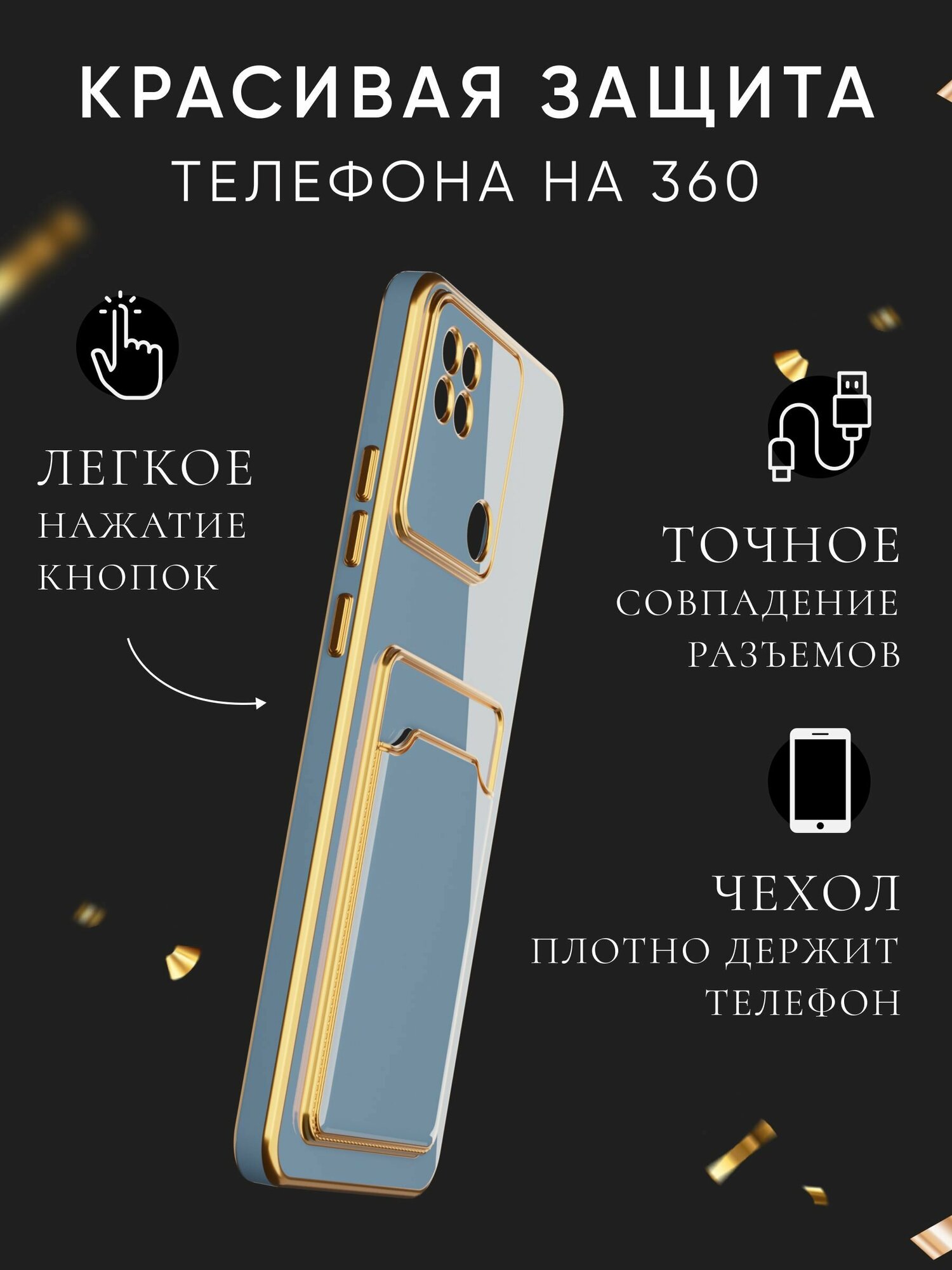 СохранитьЧехол на Redmi 9C с золотой рамкой противоударный бампер с карманом для карт на редми 9с Белый интересное: