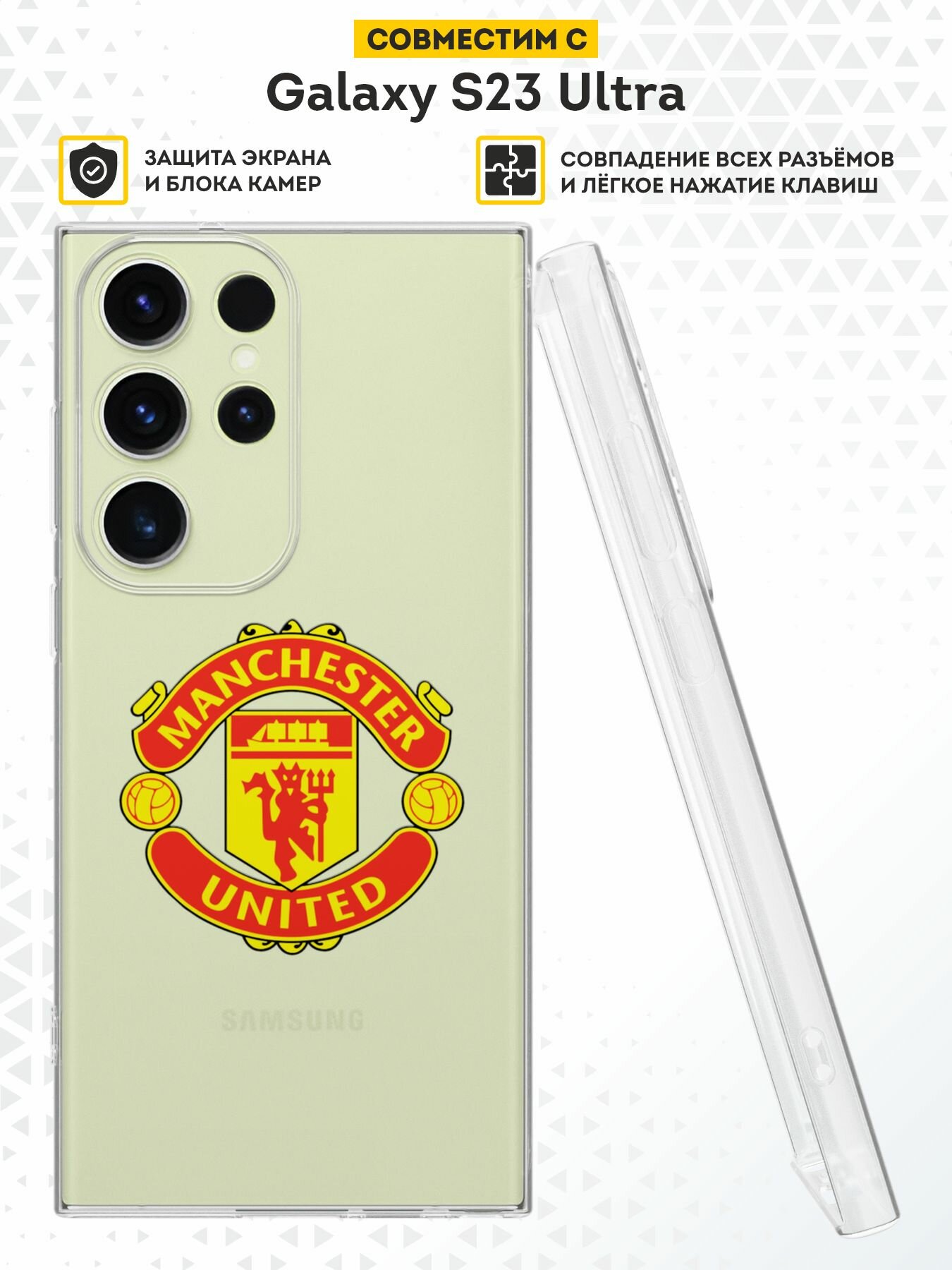 Купить Силиконовый чехол DesignOnCase на Galaxy S23 Ultra, защита камеры, прозрачный, с принтом Manchester