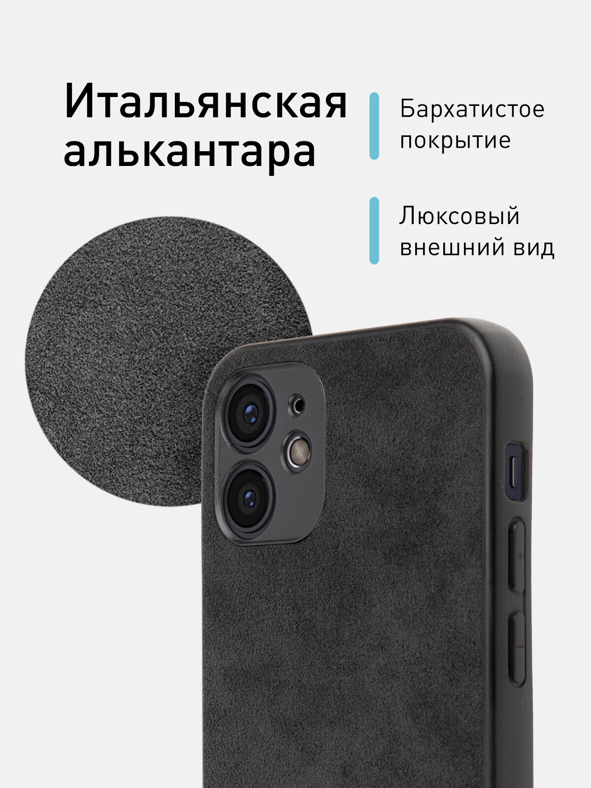 Люксовый замшевый чехол Alcantara на Apple iPhone 12 Mini (Айфон 12 Мини), бренд Rosco, бархатистый, черный интересное: