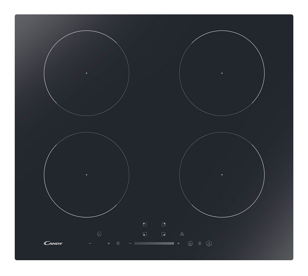 Candy Встраиваемая варочная панель Индукционная шириной 60 см. 4 индукционных зоны нагрева. Управление: сенсорный монослайдер. Режим "Пауза". Режим "Поддержание тепла". Booster. Таймер (мульти). Регулировка максимальной мощности подключения 2,5 - 7,4 кВт.