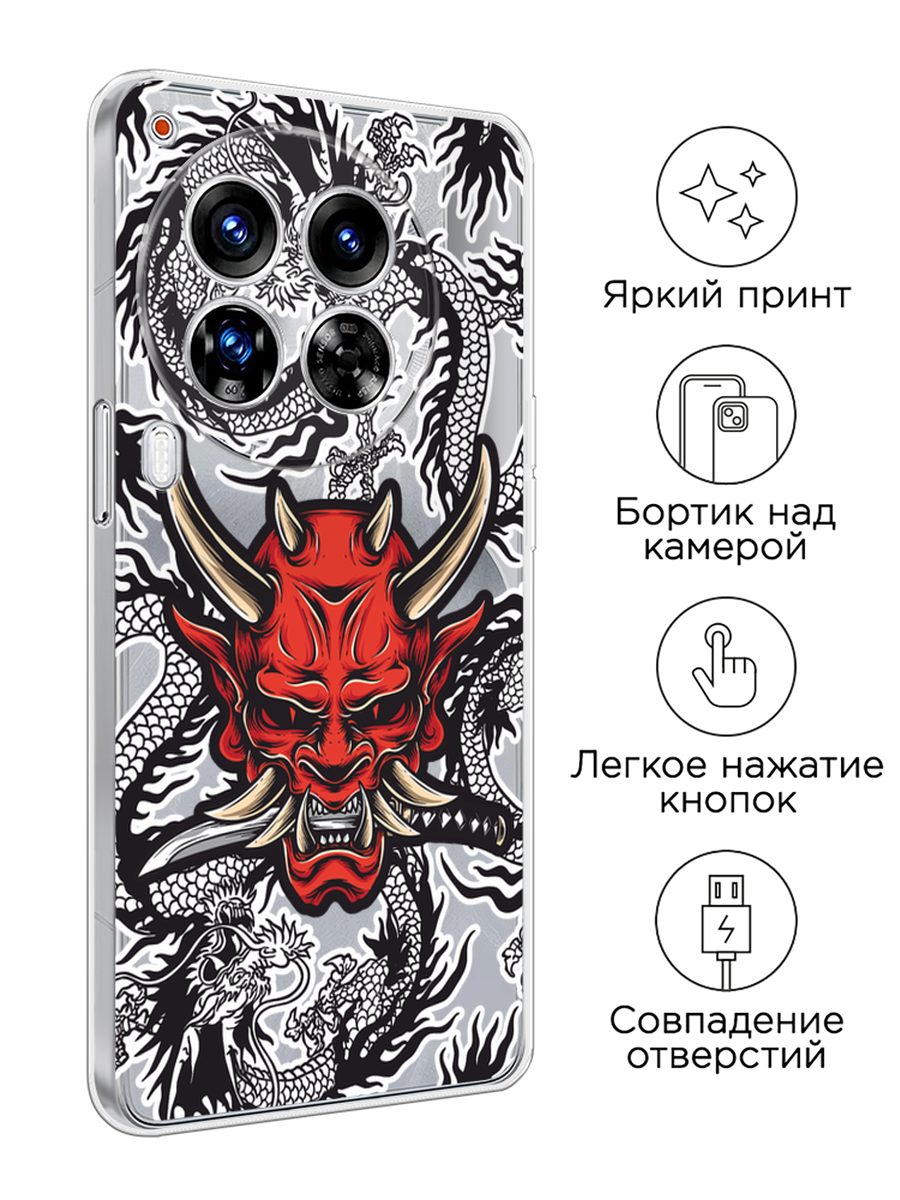 СохранитьЧехол на Tecno Camon 30 Premier / Текно Камон 30 Премьер с принтом Маска и драконы, прозрачный интересное: