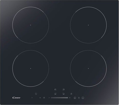 Candy Встраиваемая варочная панель Индукционная шириной 60 см. 4 индукционных зоны нагрева. Управление: сенсорный монослайдер. Режим "Пауза". Режим "Поддержание тепла". Booster. Таймер (мульти). Регулировка максимальной мощности подключения 2,5 - 7,4 кВт.