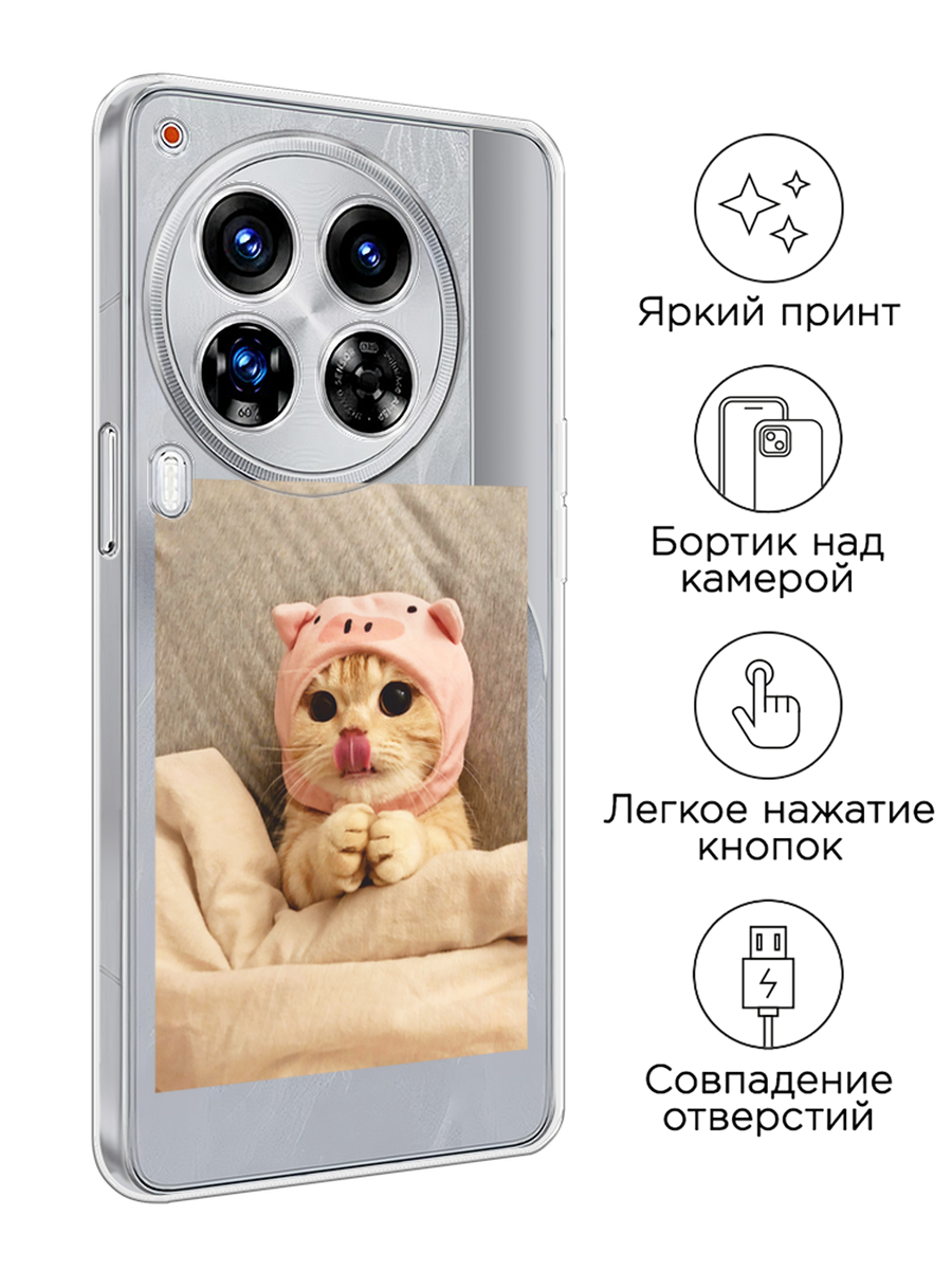СохранитьЧехол на Tecno Camon 30 Premier / Текно Камон 30 Премьер с принтом Котик в розовой шапочке, прозрачный интересное: