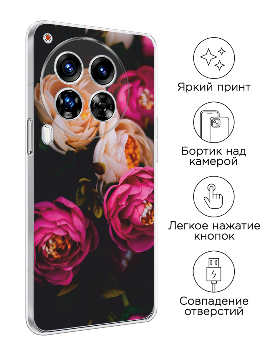 СохранитьЧехол на Tecno Camon 30 Premier / Текно Камон 30 Премьер с принтом Розовые пионы на черном интересное: