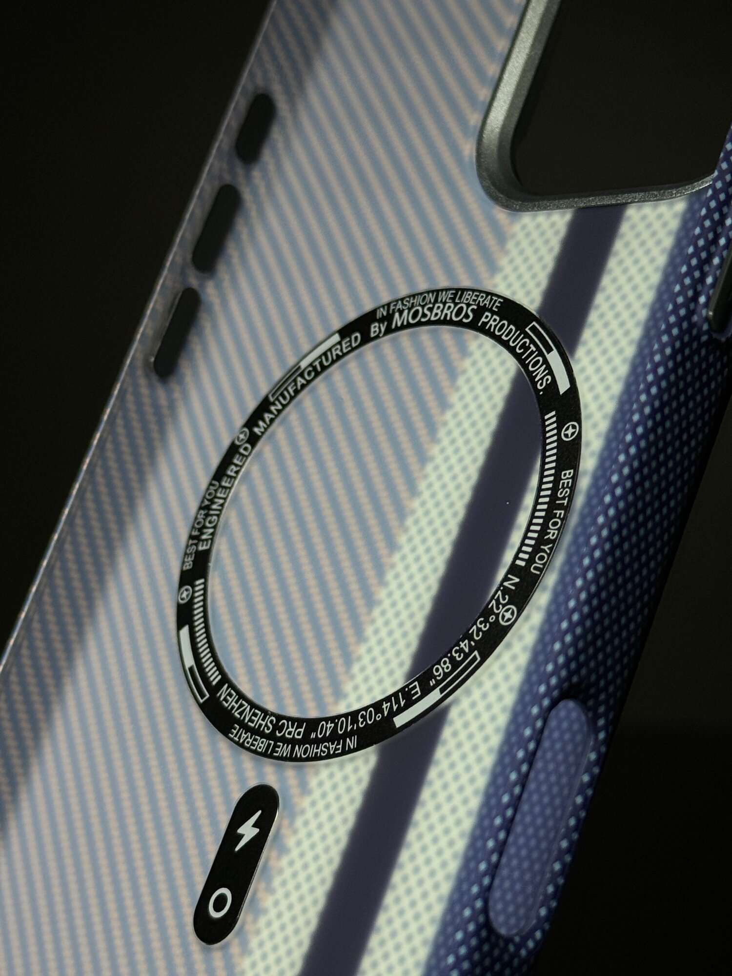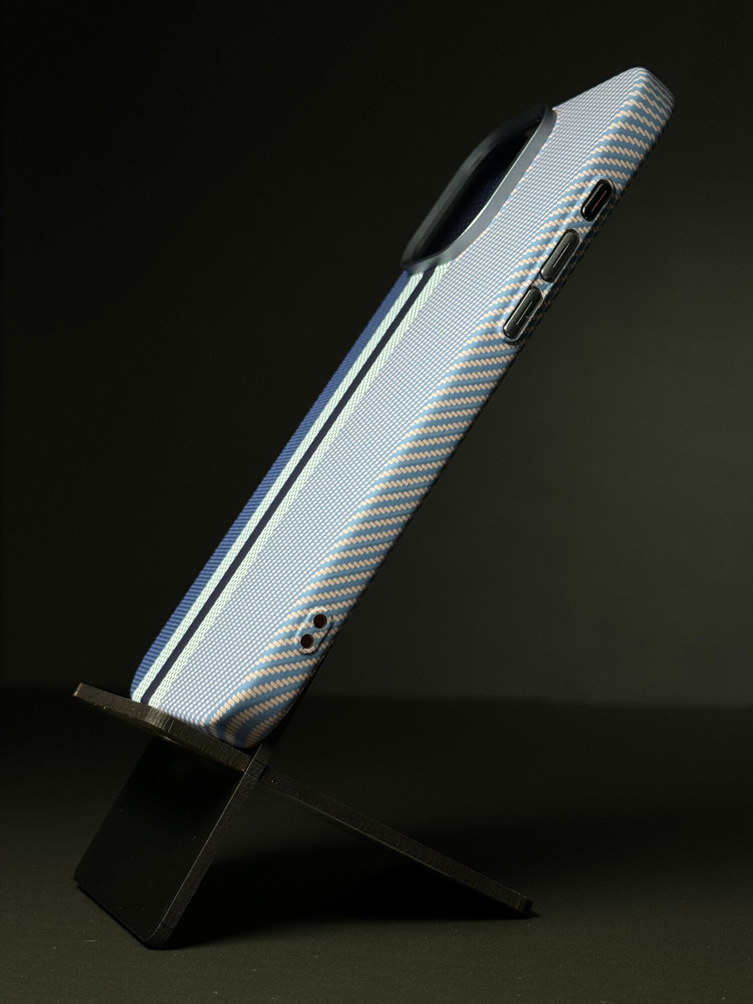 СохранитьЧехол-накладка для Айфон 16 Про Макс с МагСейф из Кевлара / чехол на iPhone 16 Pro Max с MagSafe Kevlar LUXO Life+ / MOSBROS, карбоновый, Оранжево-синий, c полосой интересное: