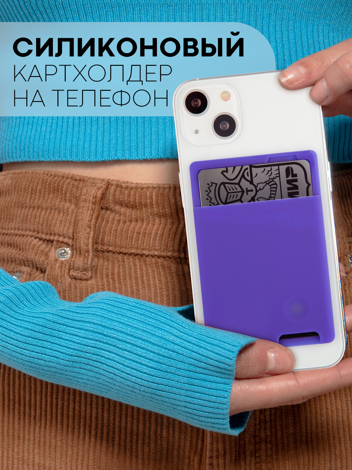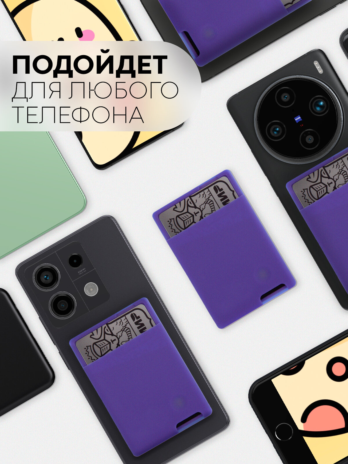 Купить Силиконовый картхолдер на телефон Картофан самоклеящийся, фиолетовый