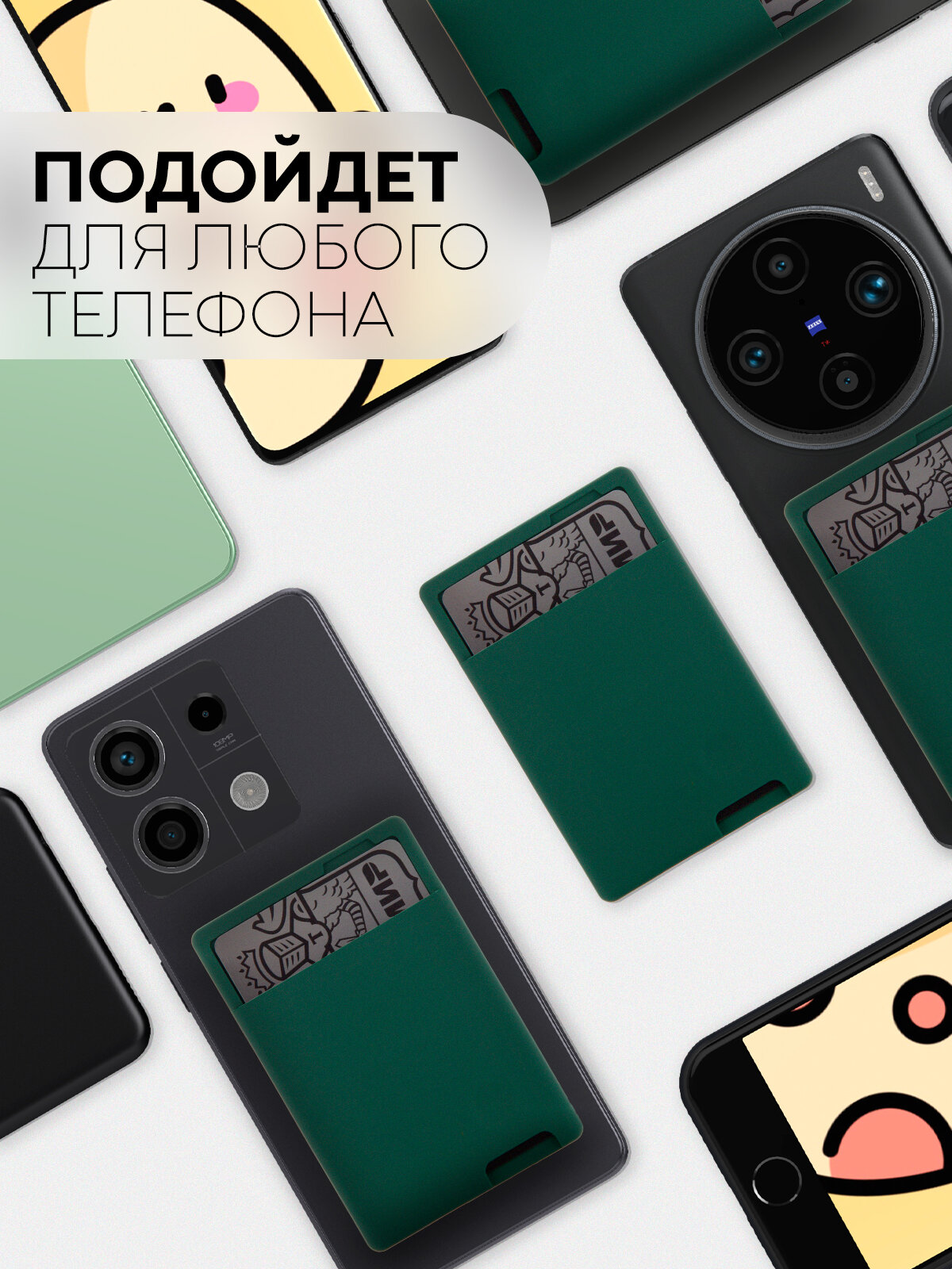 Купить Силиконовый картхолдер на телефон Картофан самоклеящийся, темно-зелёный