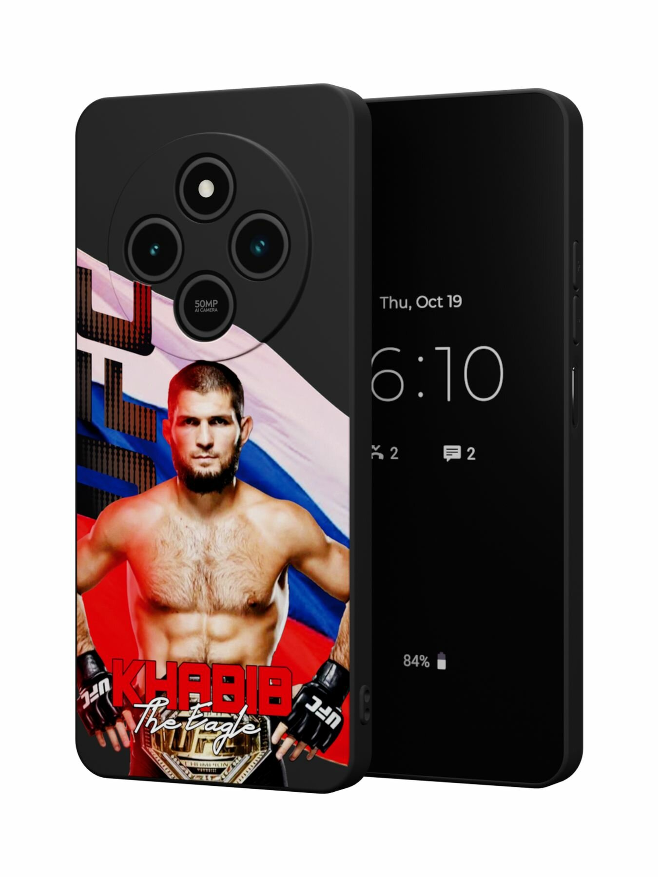 СохранитьСиликоновый чехол Mcover на Redmi 14C (4G)/Poco C75 (4G), с принтом Khabib интересное: