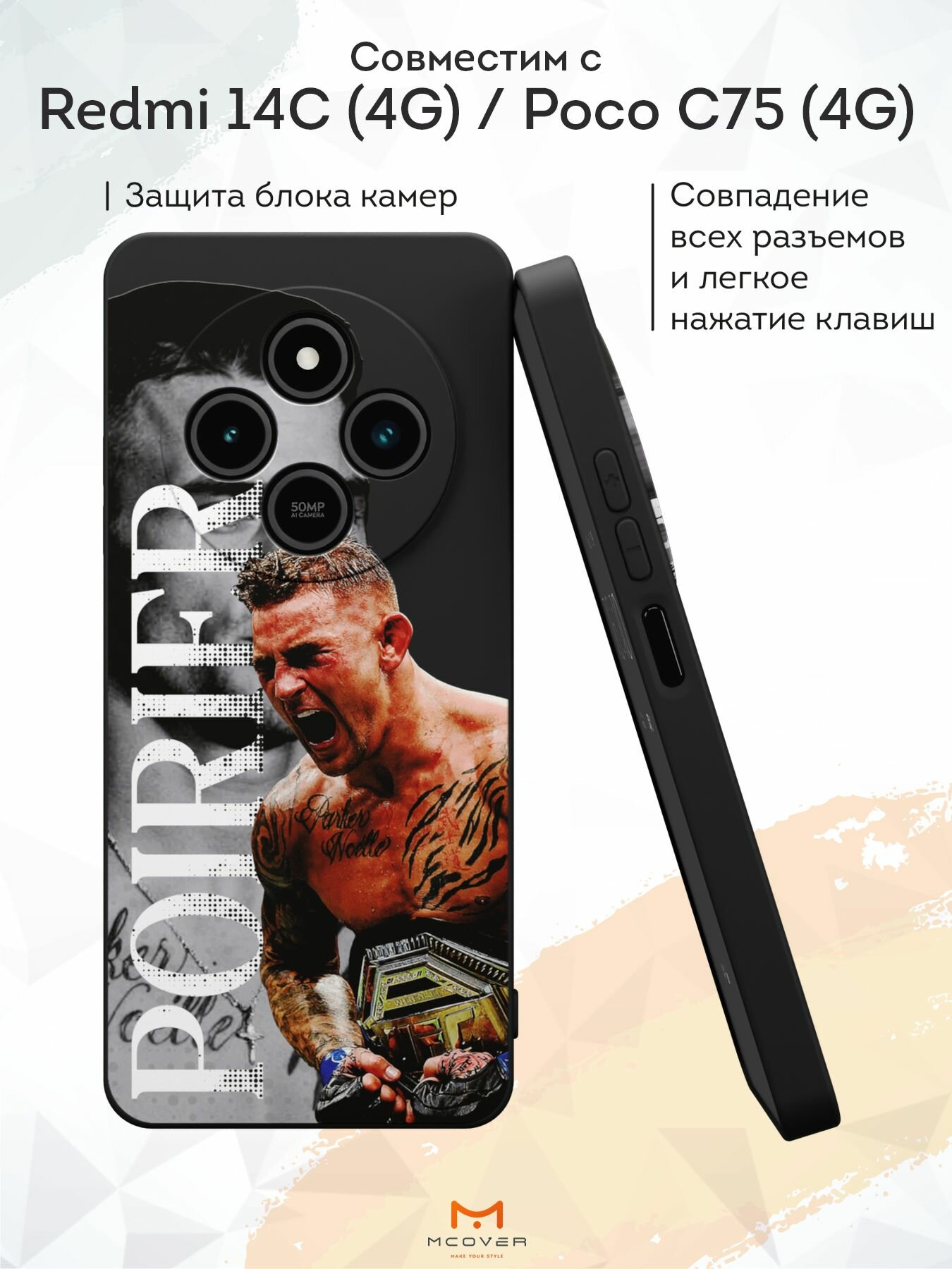 Силиконовый чехол Mcover на Redmi 14C (4G)/Poco C75 (4G), с принтом Ilia Topuria