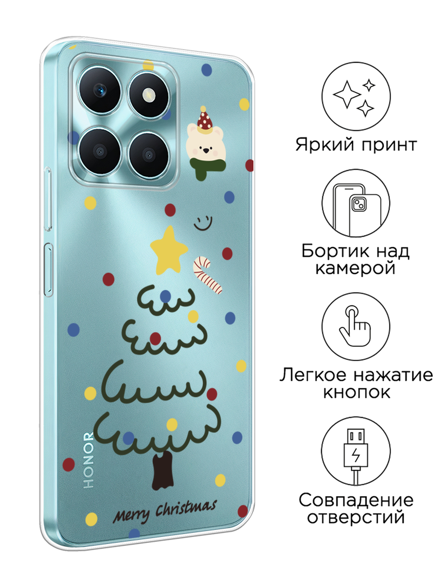 СохранитьЧехол на Honor X6A / Хонор X6A с принтом Ёлка милый рисунок, прозрачный интересное: