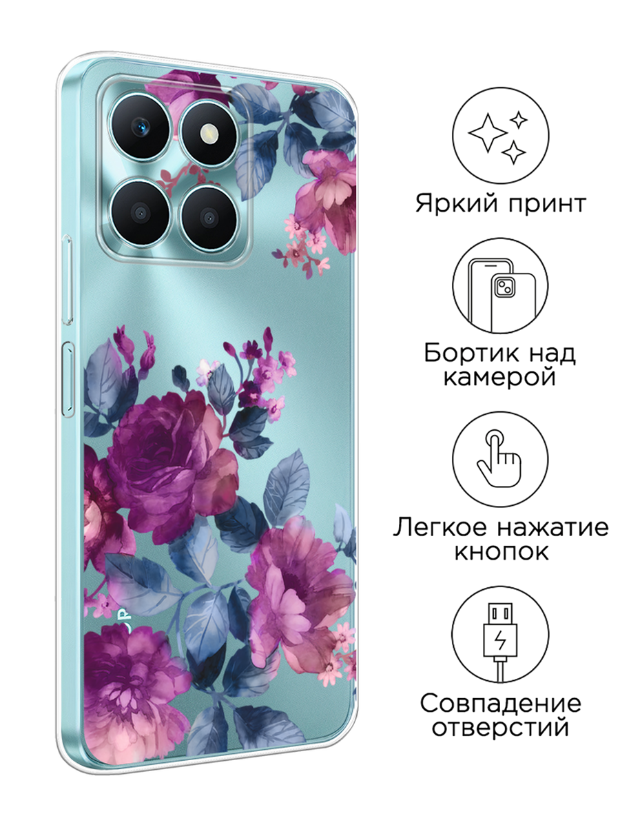 Купить Чехол на Honor X6A / Хонор X6A с принтом Purple Blossoms, прозрачный