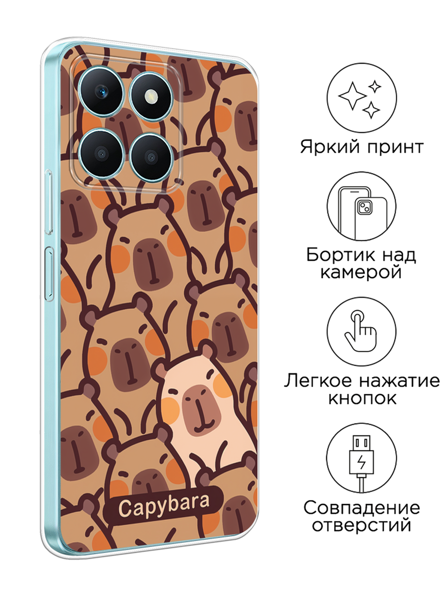 СохранитьСиликоновый чехол на Honor X6A / Хонор X6A с принтом Толпа капибар интересное: