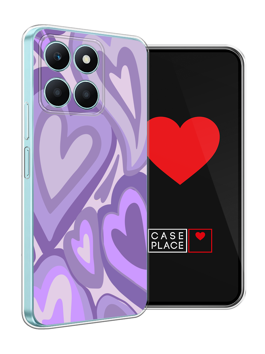 Купить Силиконовый чехол на Honor X6A / Хонор X6A с принтом Фиолетовые сердца