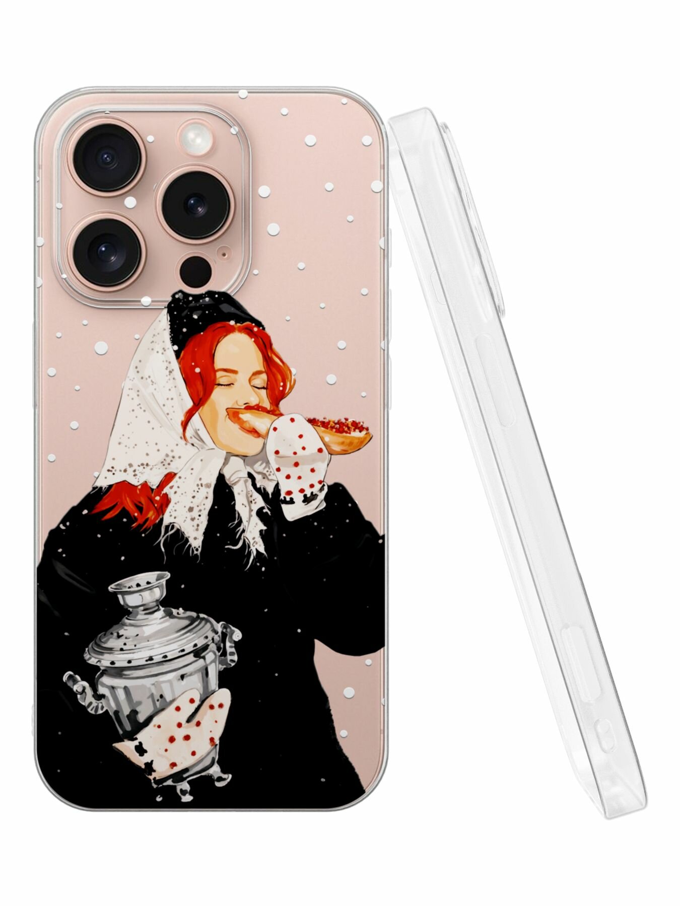 СохранитьСиликоновый чехол Mcover на iPhone 16 Pro, с принтом Рыжая девушка с самоваром интересное: