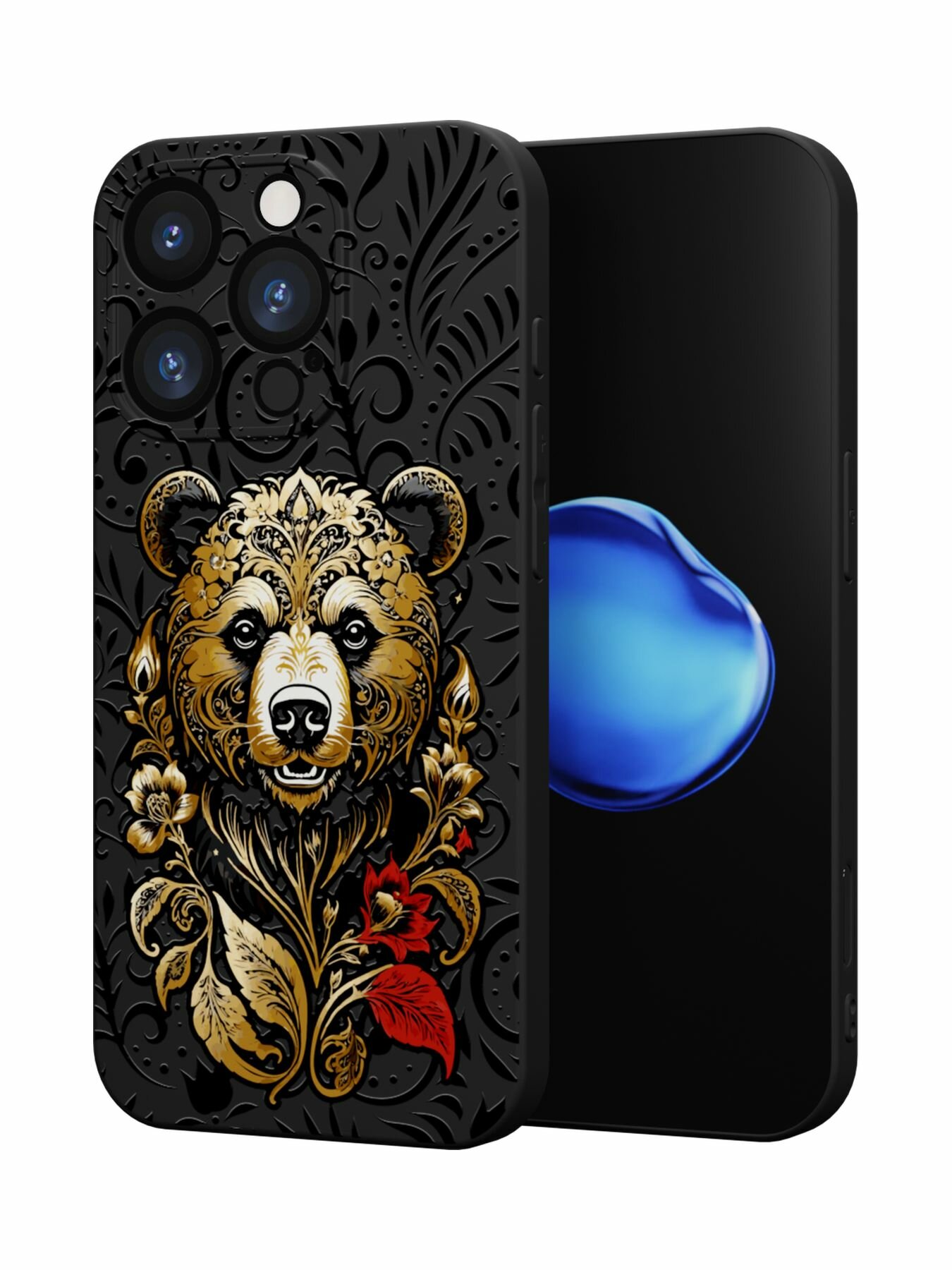 СохранитьСиликоновый чехол Mcover на iPhone 16 Pro, с принтом Медведь в русском стиле интересное:
