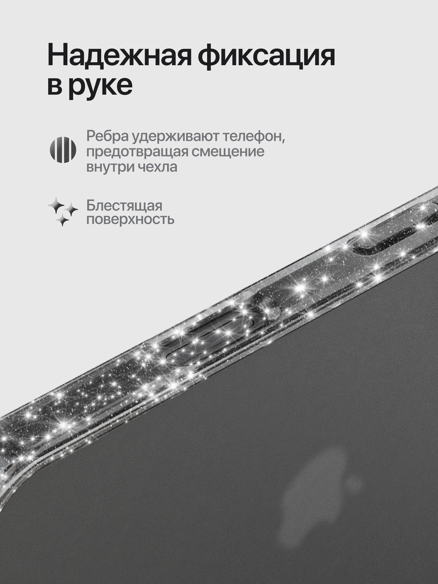 Прозрачный чехол для iPhone 16 с блестками / Матовый бампер на Айфон 16 с ребристыми гранями
