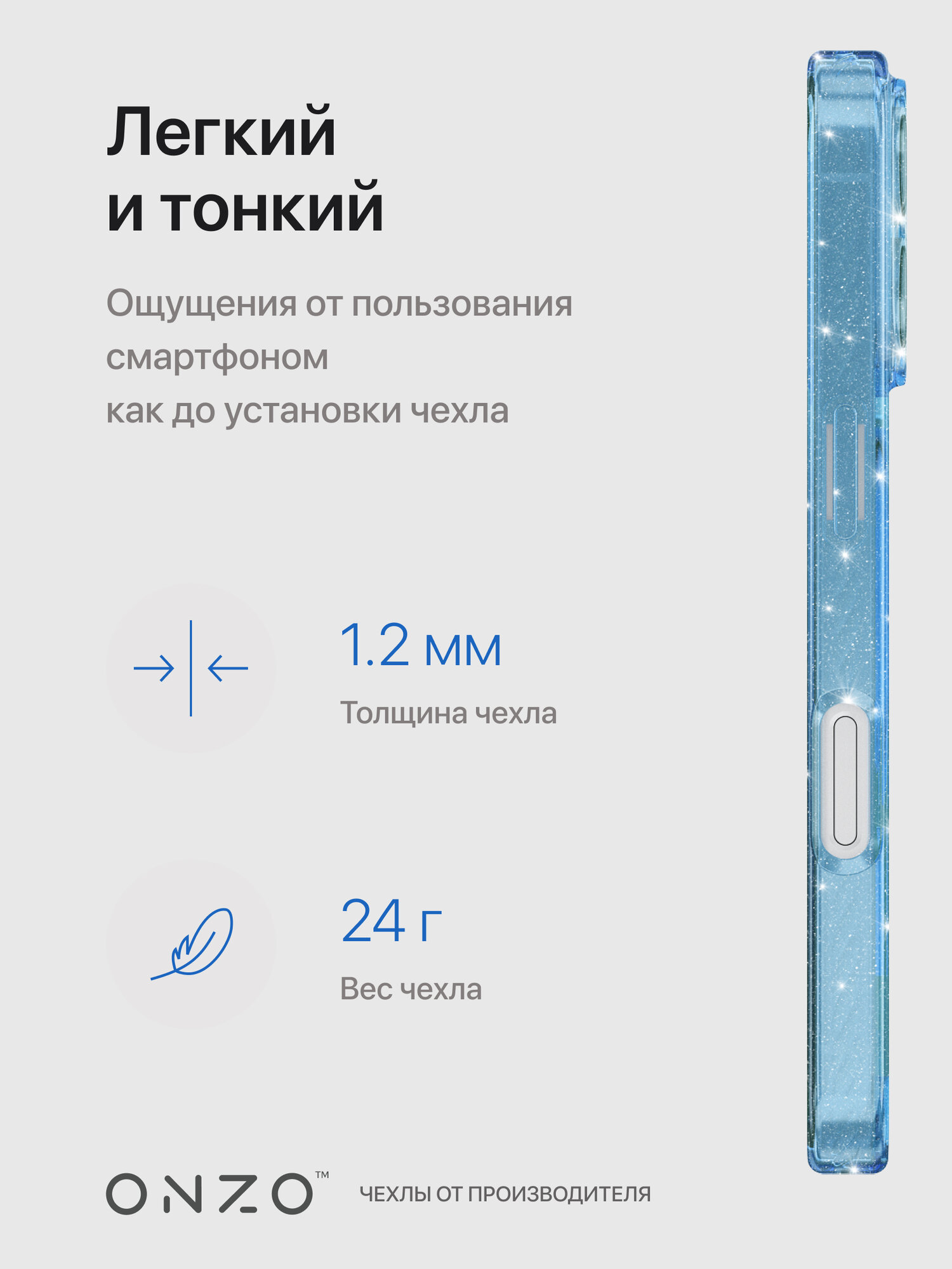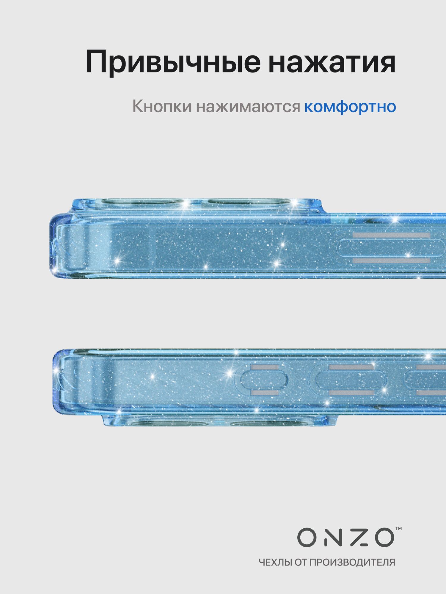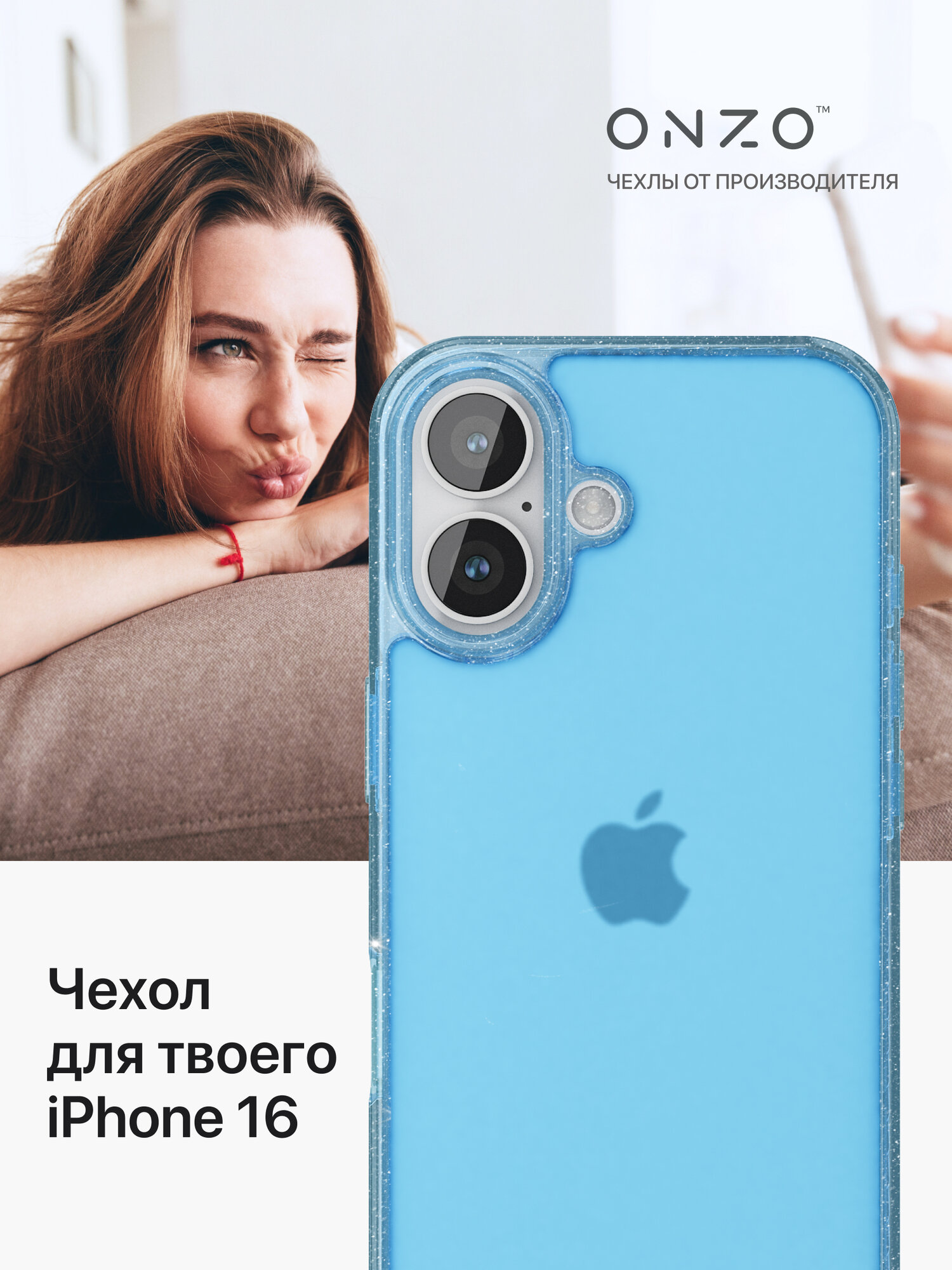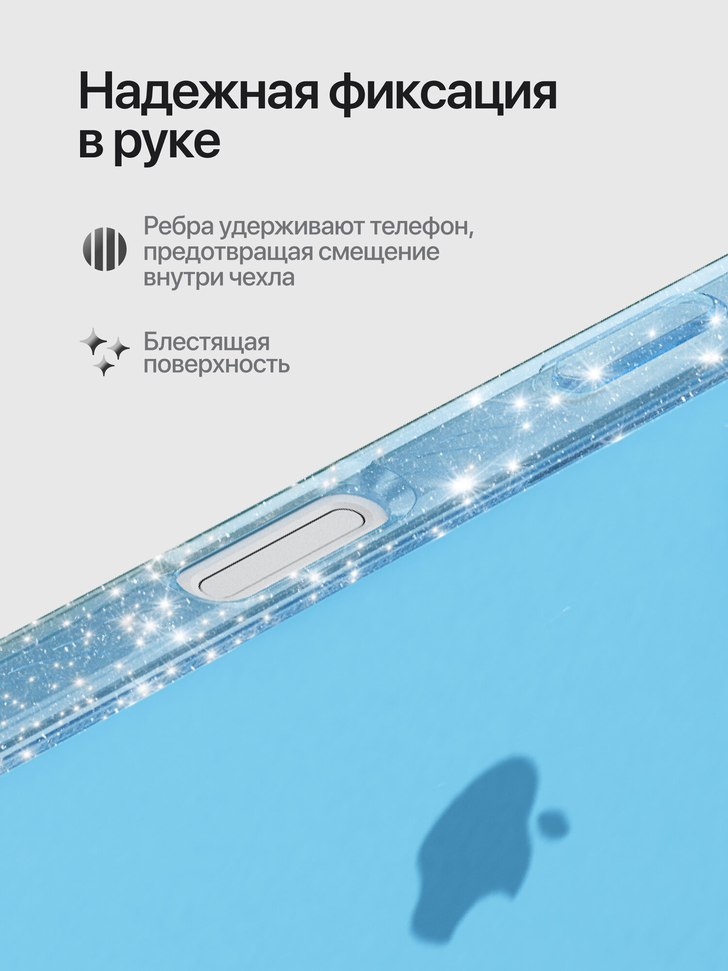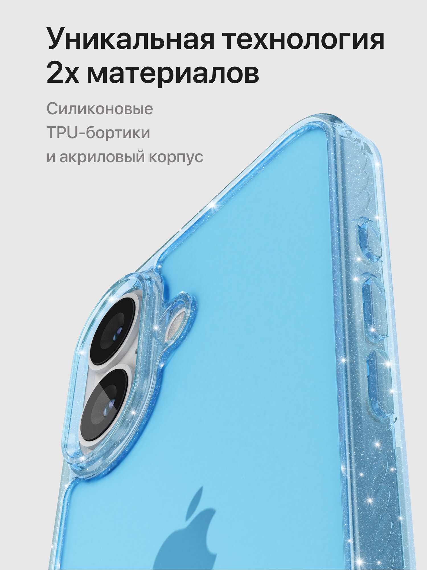 СохранитьЗащитный чехол для iPhone 16 матовый прозрачный голубой / Бампер на Айфон 16 с блестками серебристыми интересное: