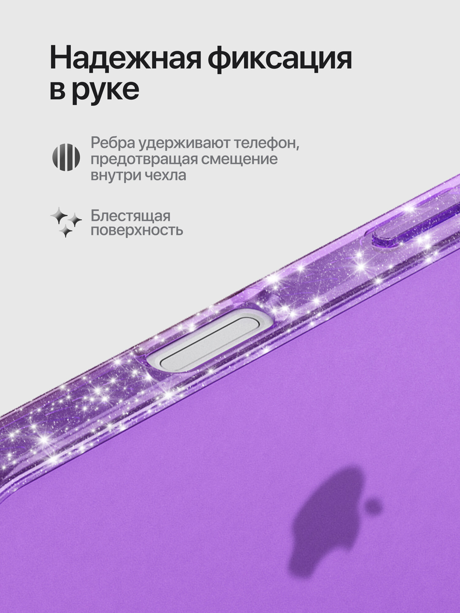 СохранитьМатовый чехол на iPhone 16 / Айфон 16 с блестками по краям, прозрачный фиолетовый интересное: