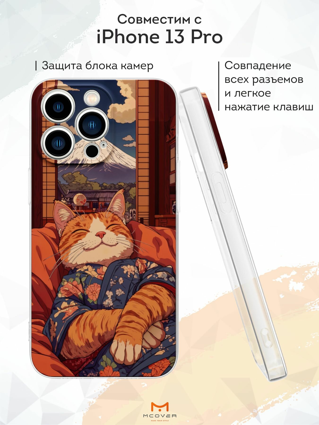 Чехол Mcover с рисунком Кот в кимоно на iPhone 13 Pro, силиконовый, матовый, защита камеры