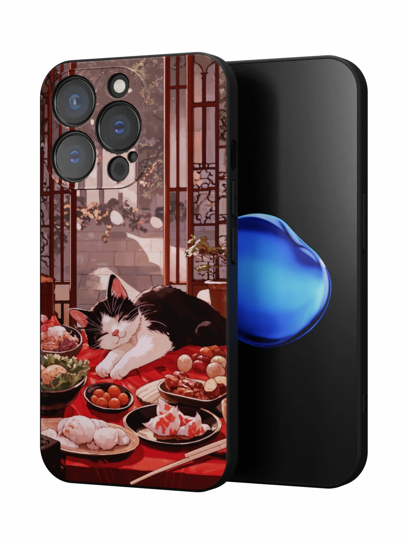 Чехол Mcover с рисунком Кот ест лапшу на iPhone 13 Pro, силиконовый, матовый, защита камеры
